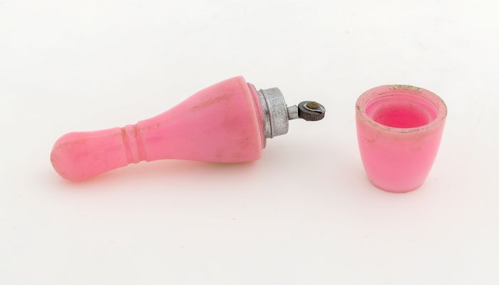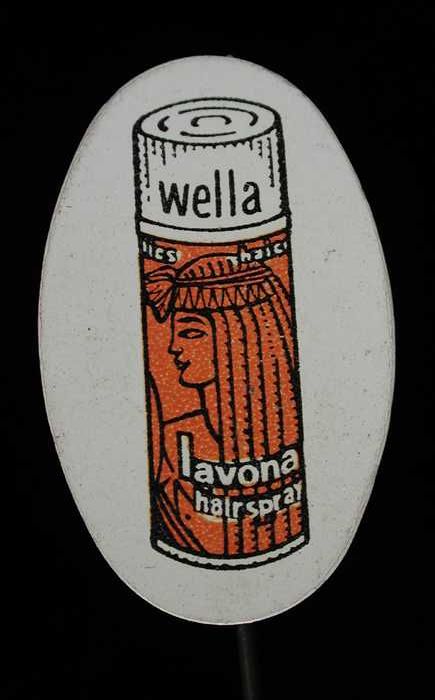 Reclamespeld, 'cosmetica', ovaal, wit met opdruk van...