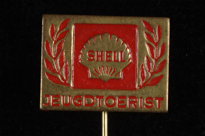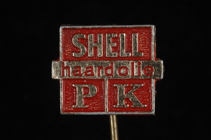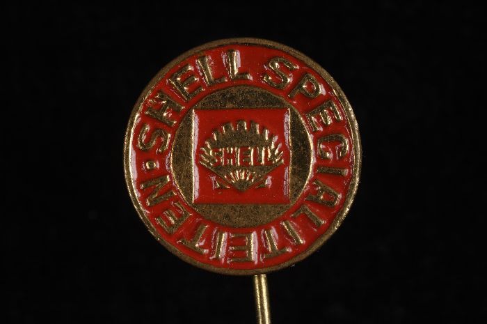 Rood en goudkleurig reclamespeld, "Shell, haardolie,...