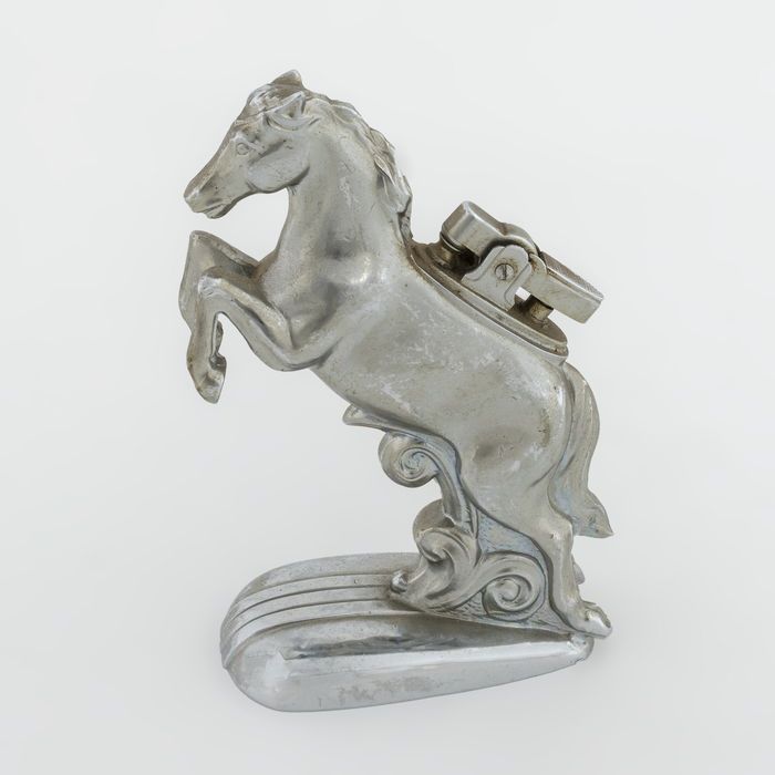 Zilverkleurig metalen steigerend paard met benzineaa...