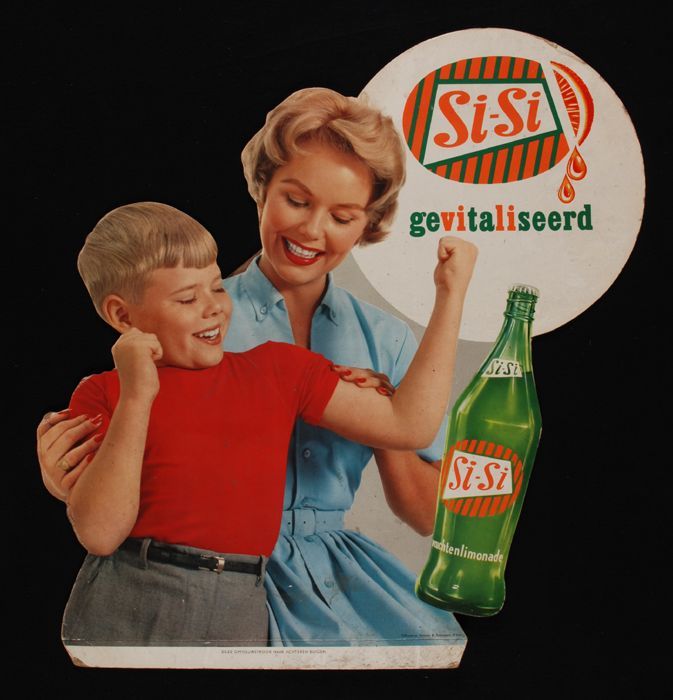 Kartonnen reclameplaat, "Si-Si", foto van moeder die...