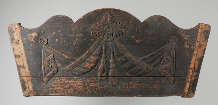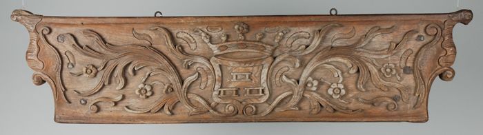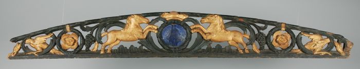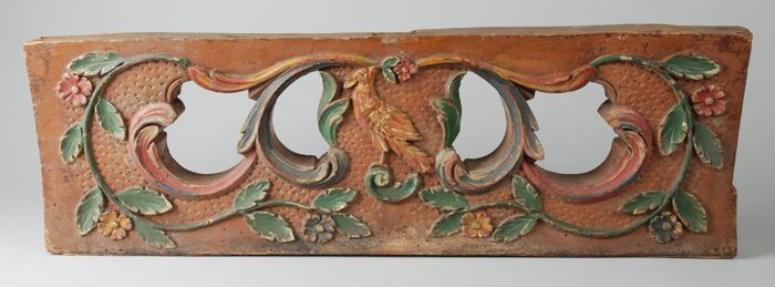 Voorschamel van wagen met gesneden vogel- en bladmot...