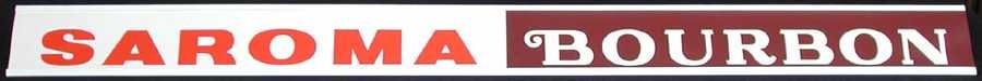 Kunststof reclamebord, wit met rode opdruk "SAROMA"