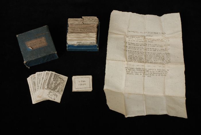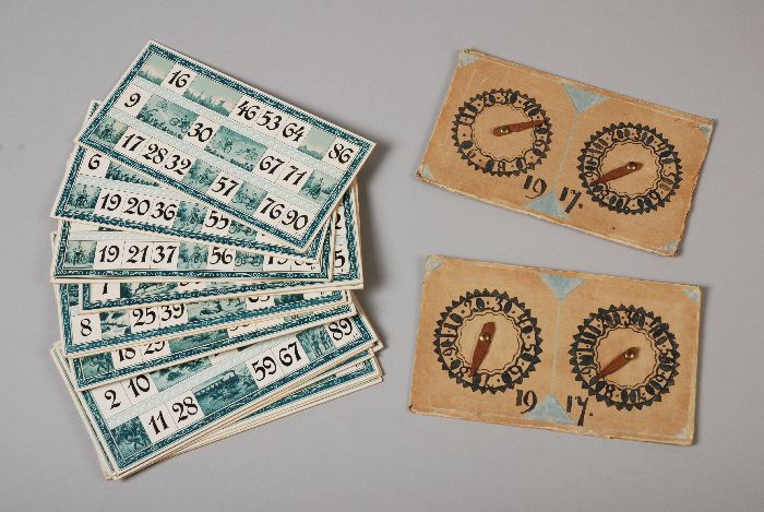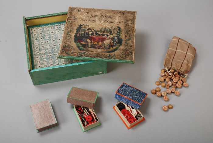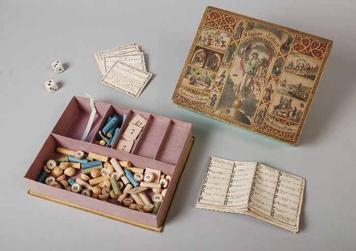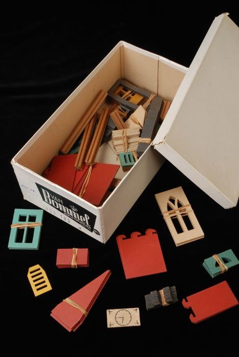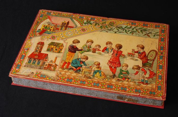 Kartonnen doos met zes puzzels, doos met reclame "Do...