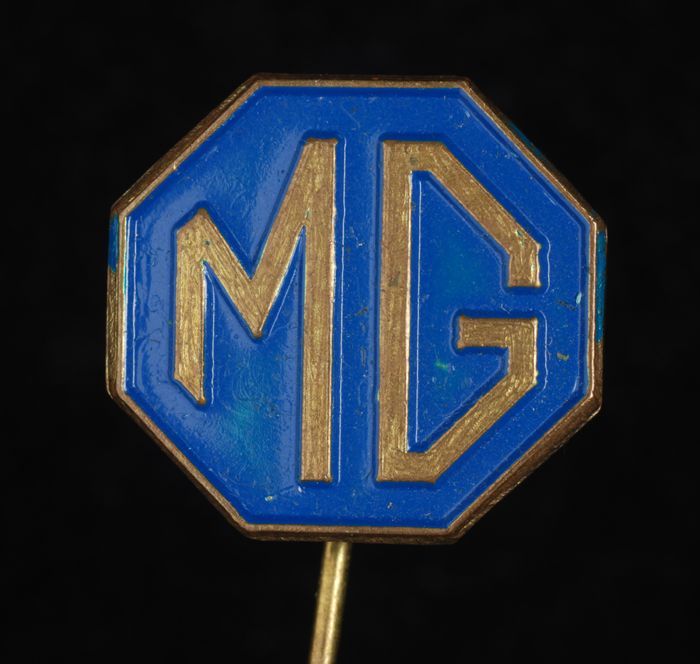 Blauw en goudkleurig vierkant reclamespeldje, "Hillman"