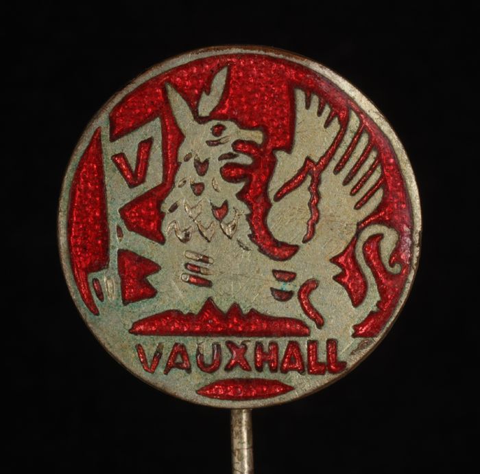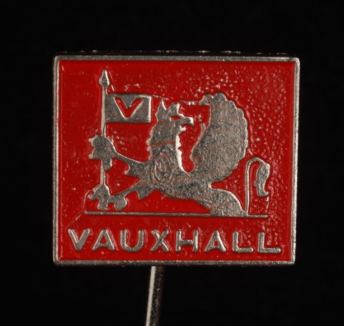 Rood rechthoekig reclamespeldje, met embleem Opel