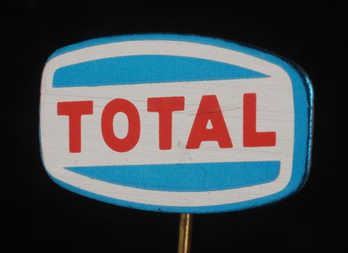 Reclamespeld, brandstofmerk, rood en goudkleurig sch...