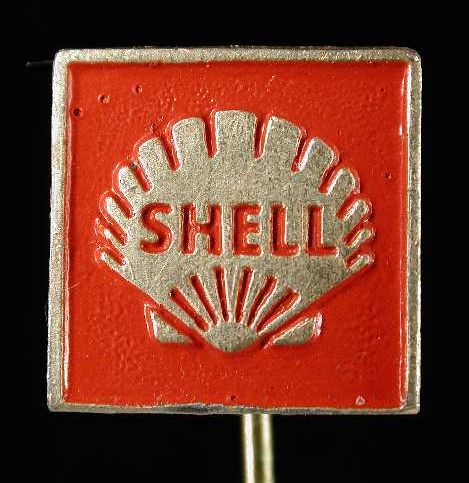 Rood en zilverkleurig vierkant "Shell" reclamespeldje