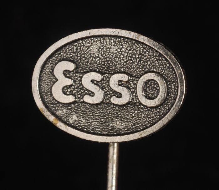 Zilverkleurig ovaal "Esso" reclamespeldje