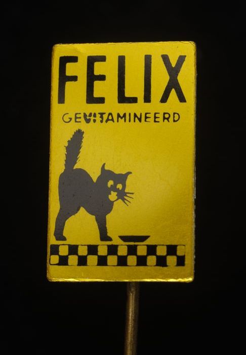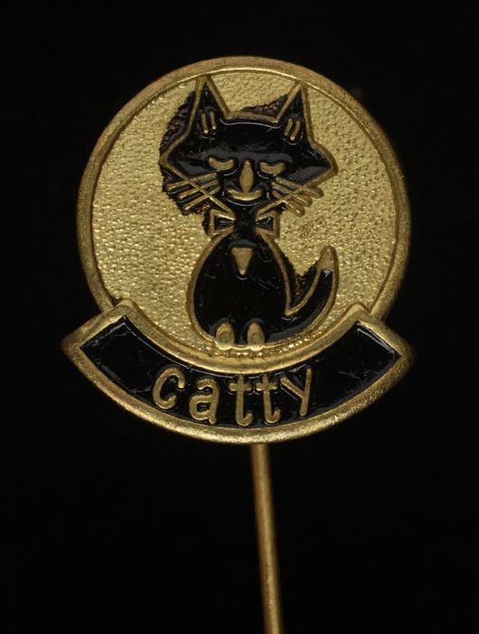 Zwart en goudkleurig reclamespeldje, "Catty", met poes