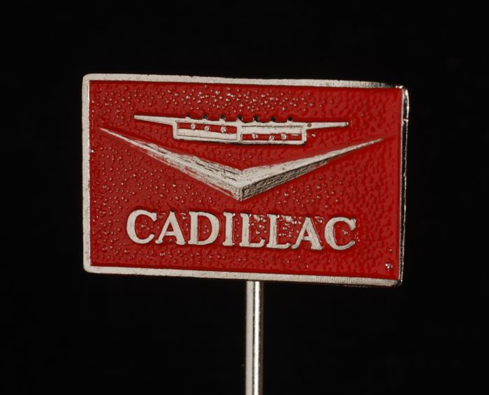 Rood rechthoekig reclamespeldje, "Cadillac"
