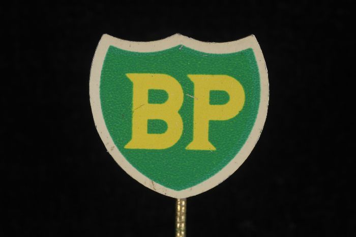 Reclamespeld, brandstofmerk, groen schild met goudkl...