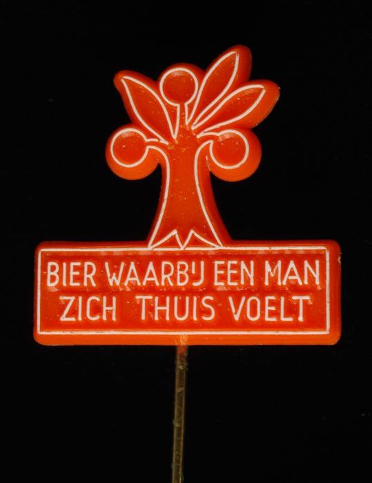 Reclamespeld, biermerk, oranje met "Bier waarbij een...