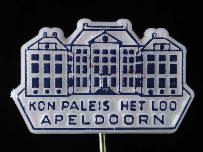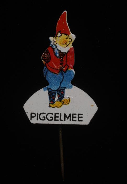 Blauw en goudkleurig vierkant reclamespeldje, "Hols,...