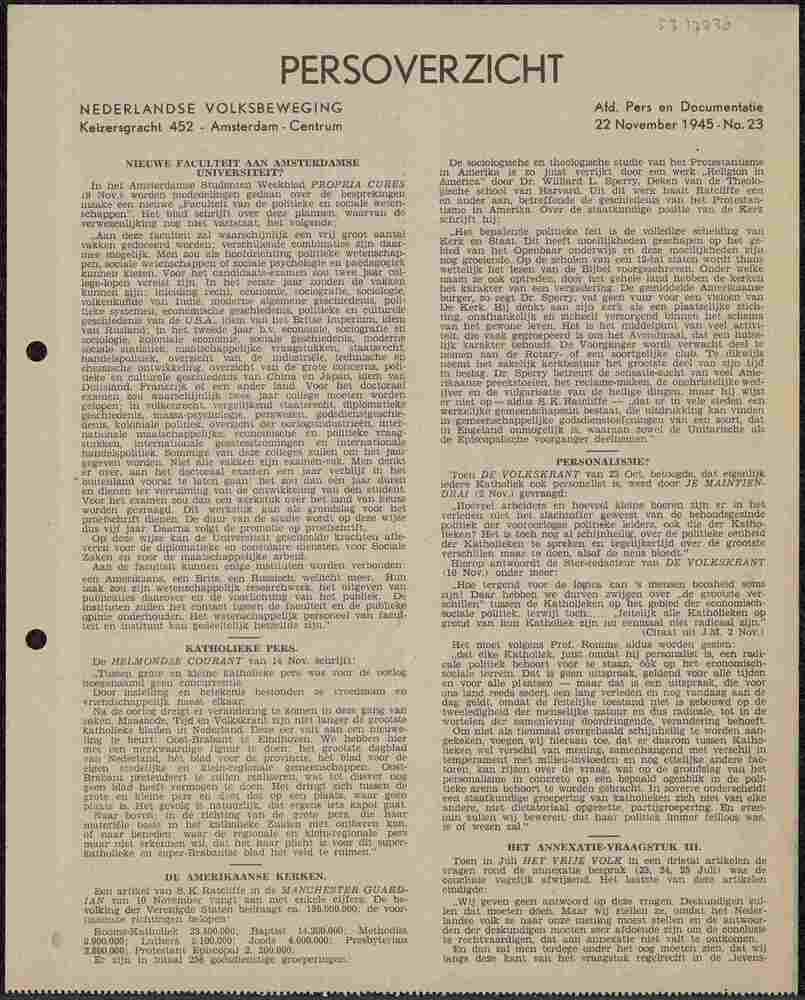 Algemeen Nederlandsch Persbureau, mededelingen, 30 m...