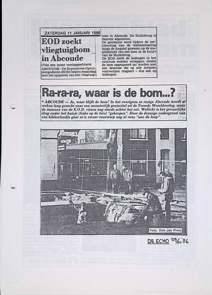 Map met knipsels : "Bommen en granaten in onze bodem...