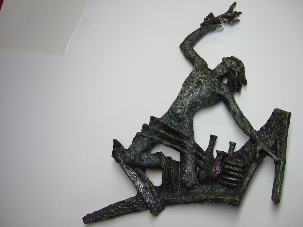 plastiek van keramiek voorstellend een man met een f...