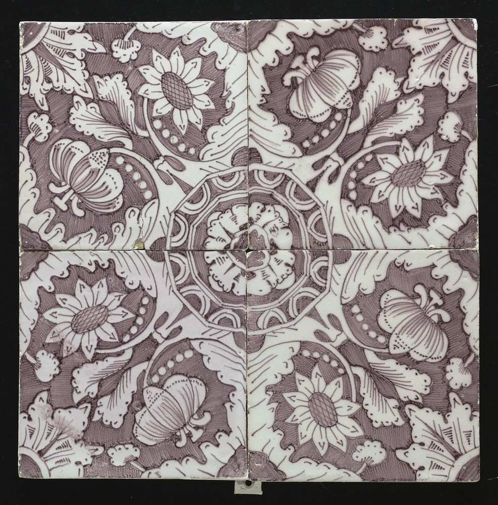 Tegelveld bestaande uit vier tegels van keramiek met...
