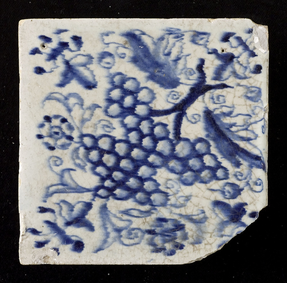 Tegel van keramiek met tinglazuur, voorstellende: wa...