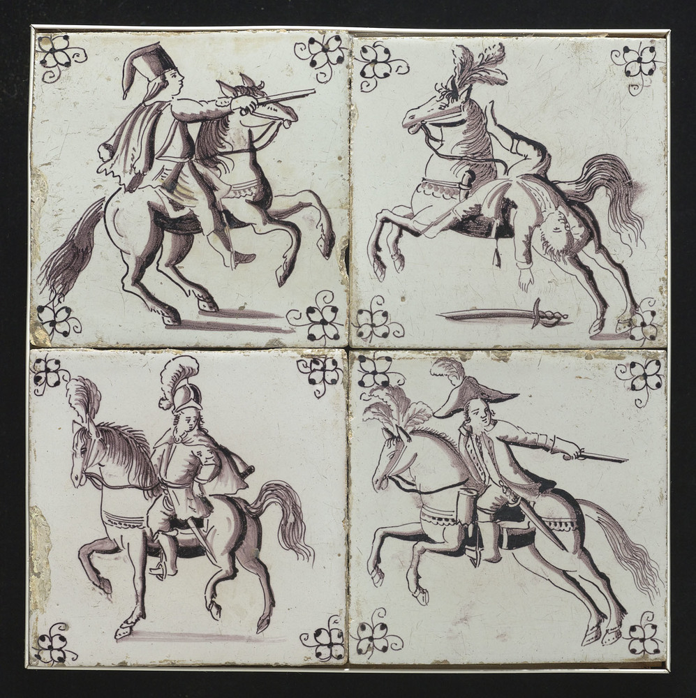 Tegelveld bestaande uit vier tegels van keramiek met...