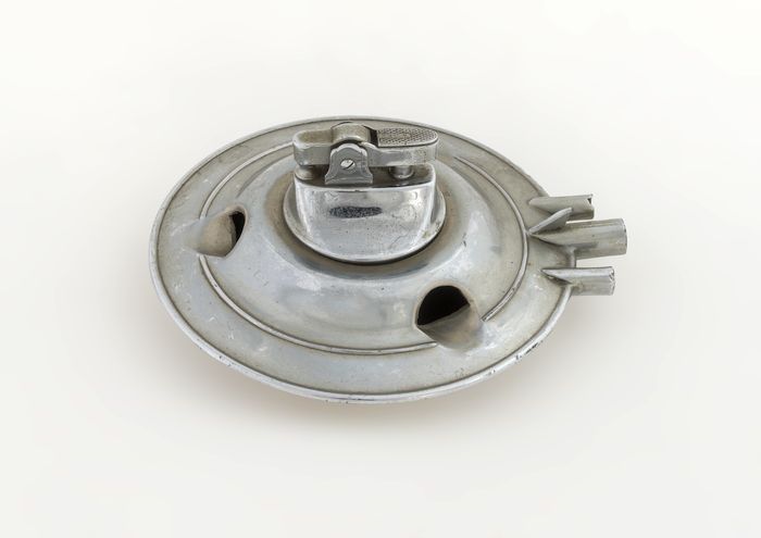 Blank metalen benzineaansteker in de vorm van een Jeep