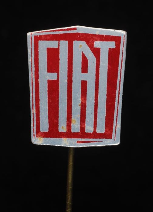 Donkerrood rechthoekig reclamespeldje, met in goud "...