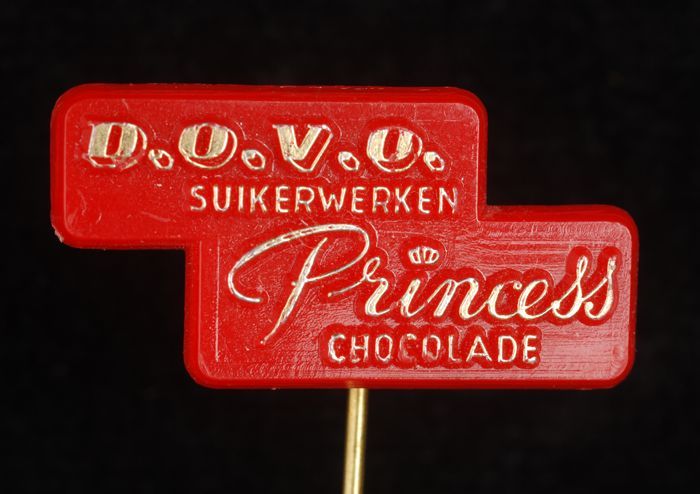 Witte en goud-kleurige reclamespeld, met "De Ruyter"...
