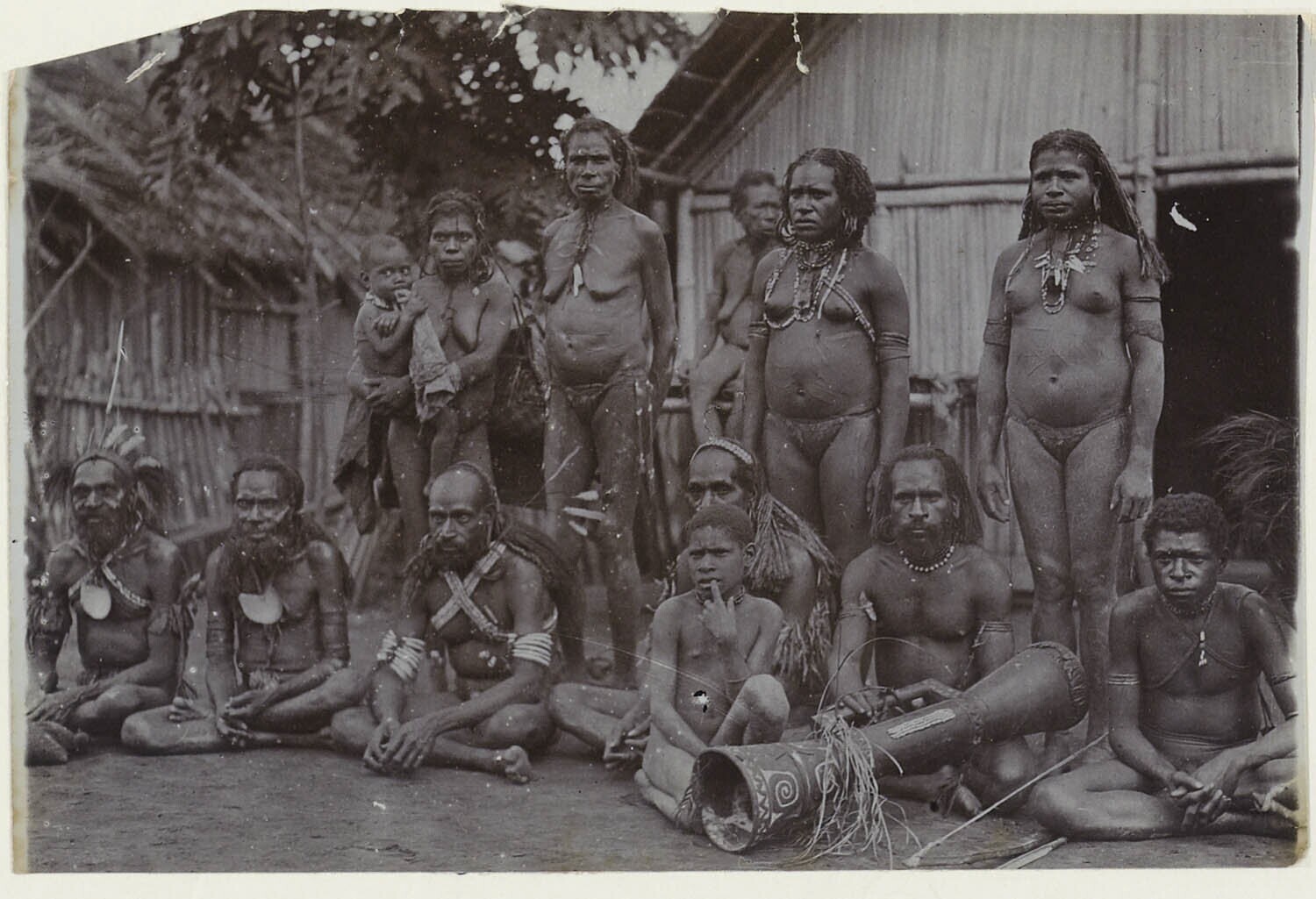 Groepsportret van mannen en vrouwen van de Marind-anim