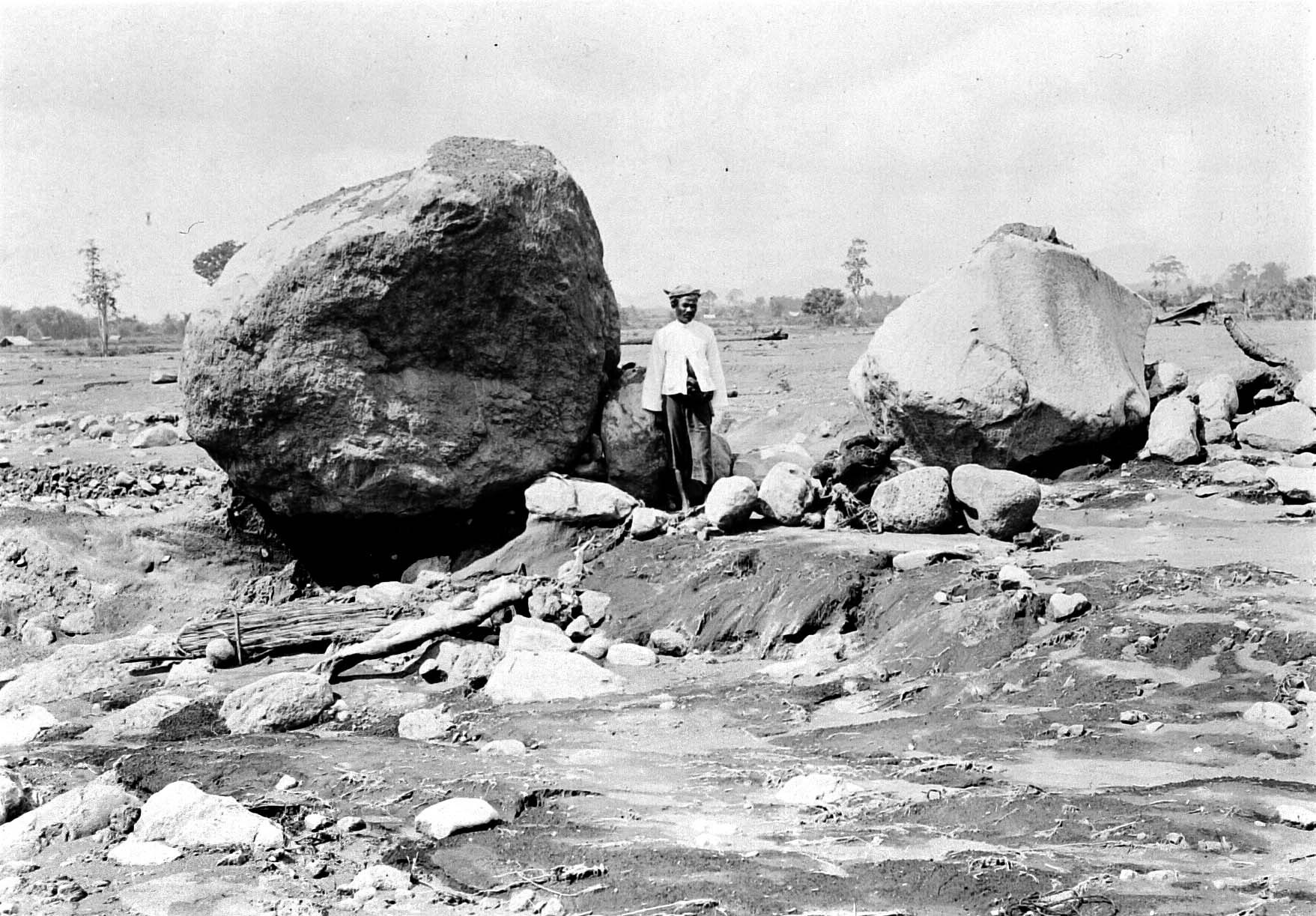 Het verwoeste dorp Kertosarie Lumadjang na de uitbar...