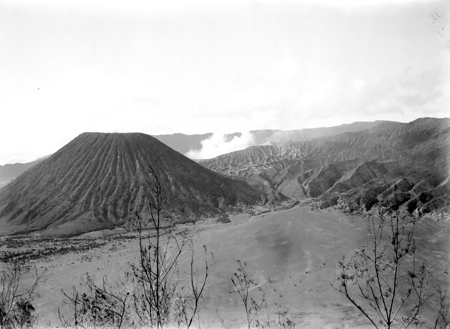 Gezicht op de Zandzee en de vulkanen Batok en Bromo