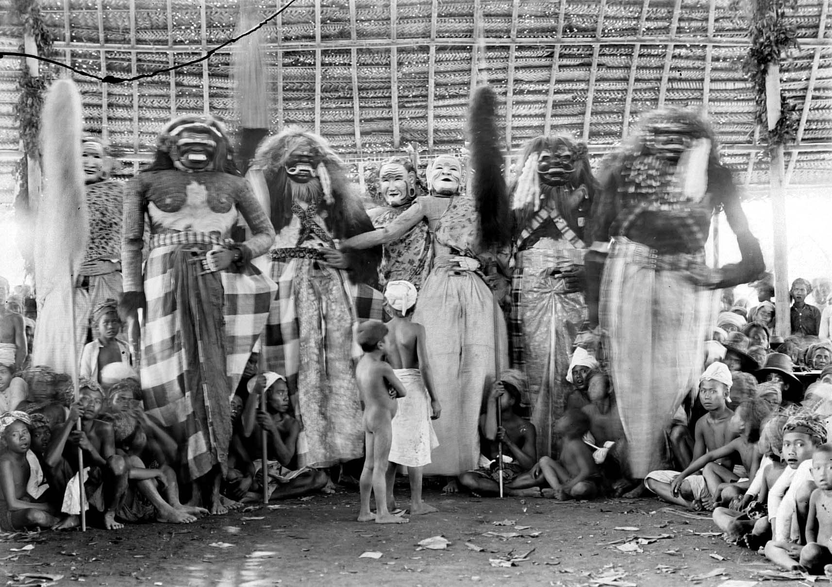 Acteurs verkleed als reuzen en boze geesten