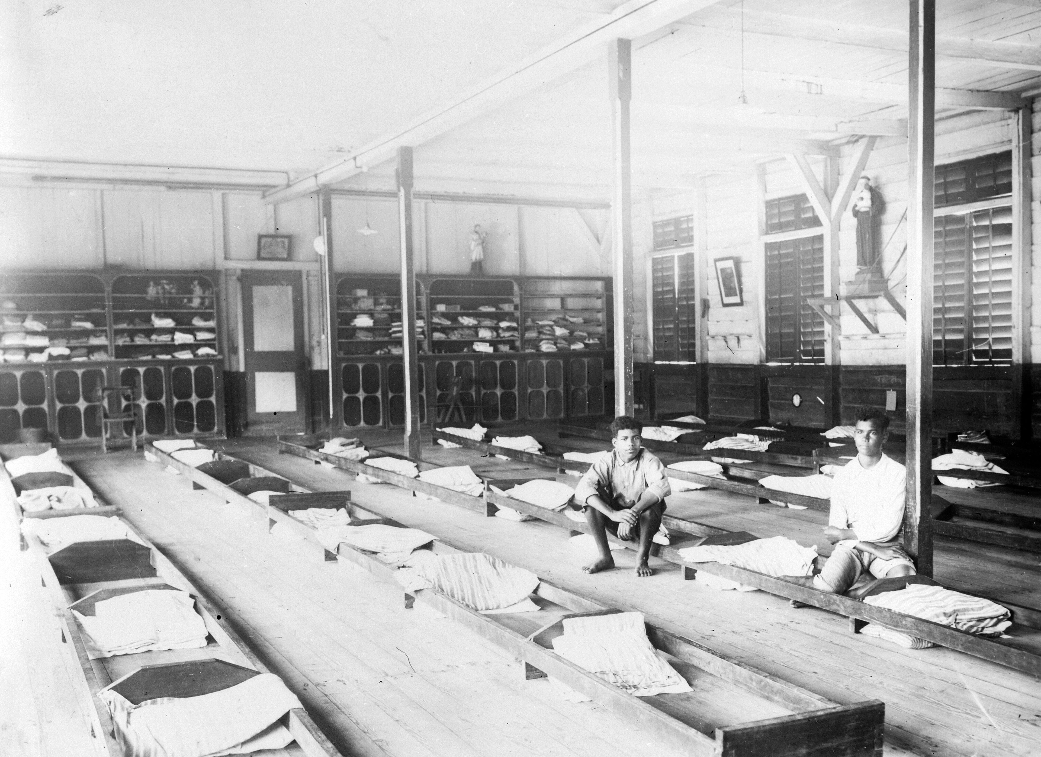 Slaapzaal van het jongensweeshuis van de rooms-katho...