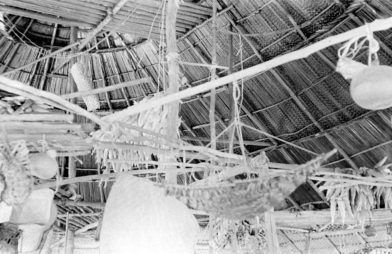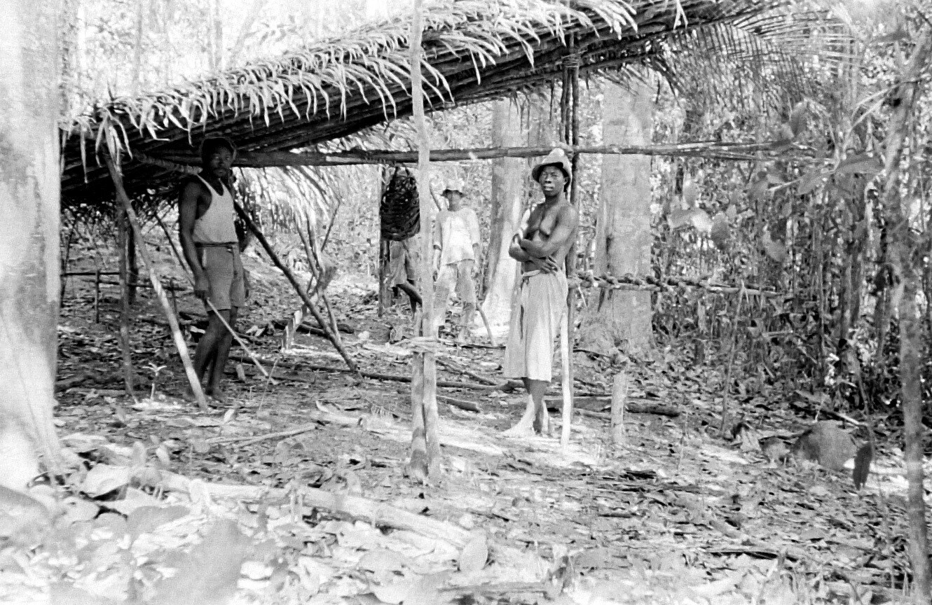 Het dak van het magazijn wordt met palmbladeren gedekt.
