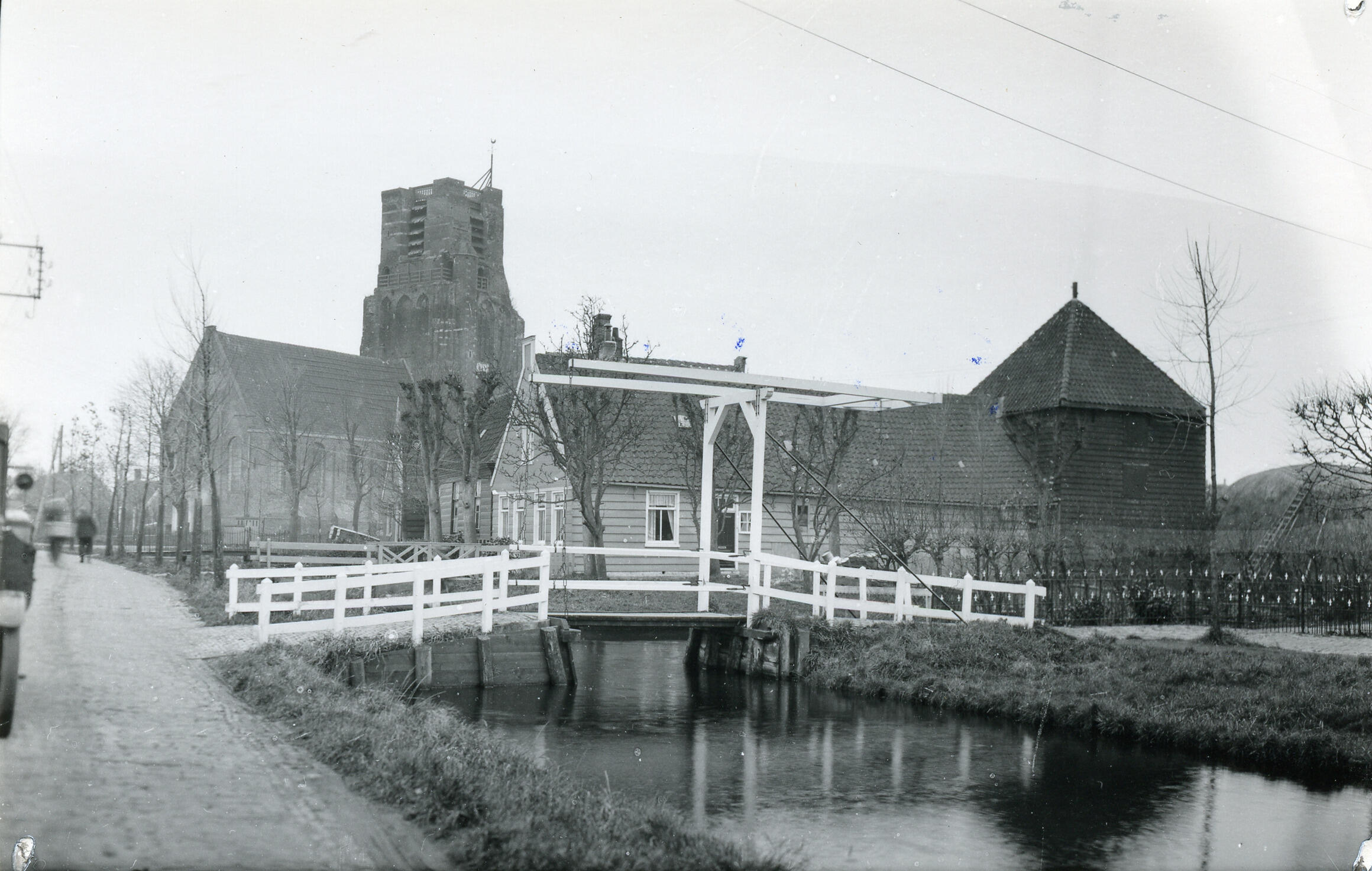 Boerderij en een kerk, Ransdorp, 1940 (zwart-wit neg...