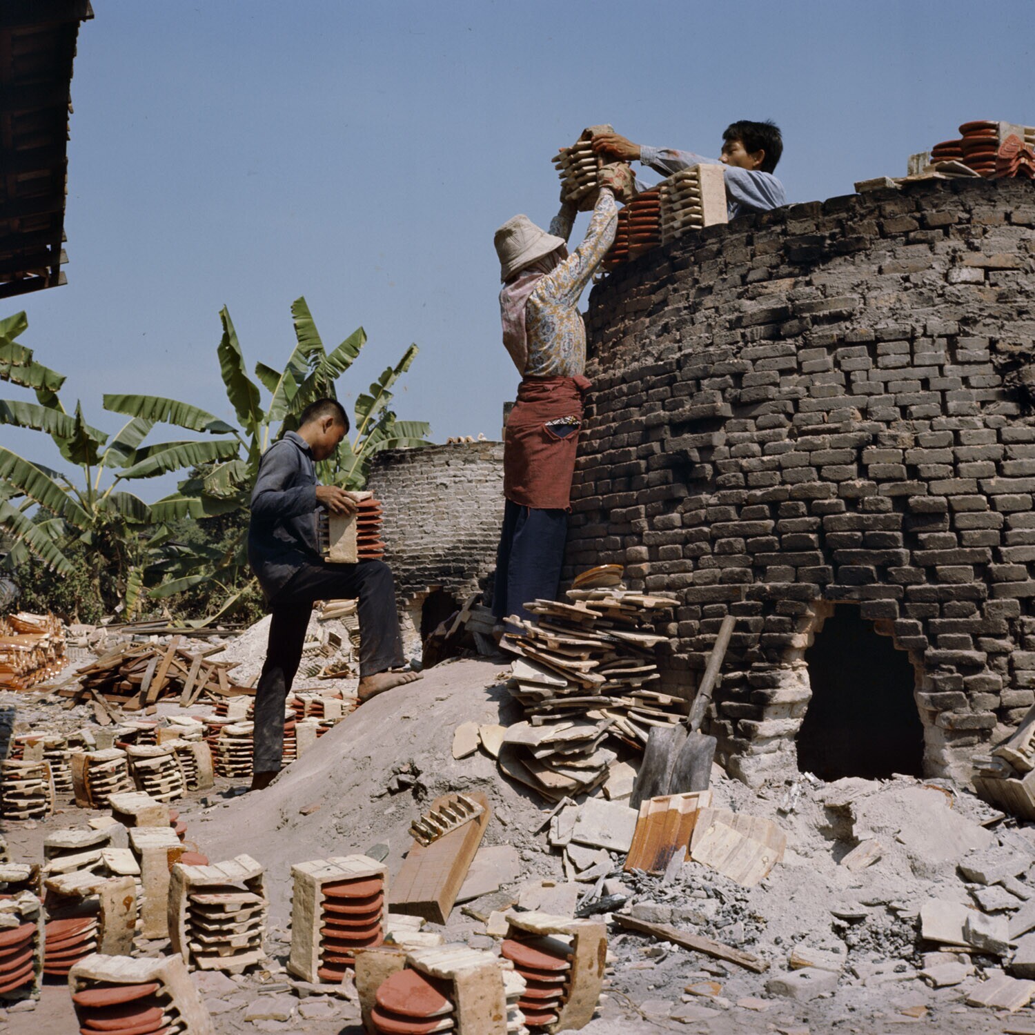 Pannebakkerij. Hier worden gewone dakpannen gemaakt ...