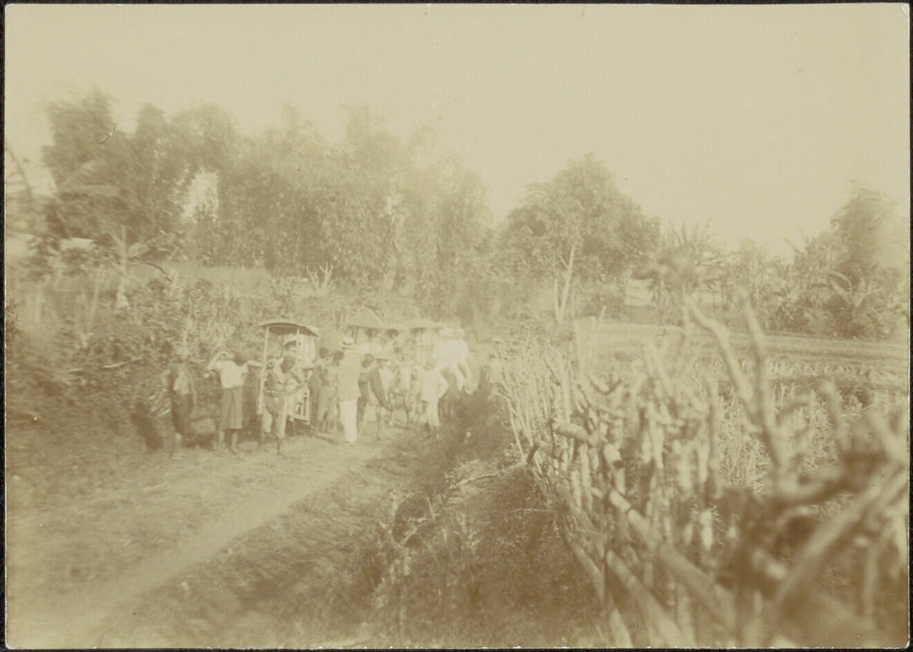 Wandeling waarbij mensen in draagstoelen worden verv...