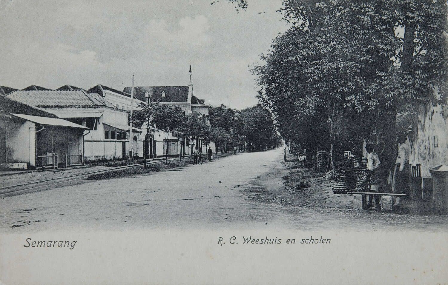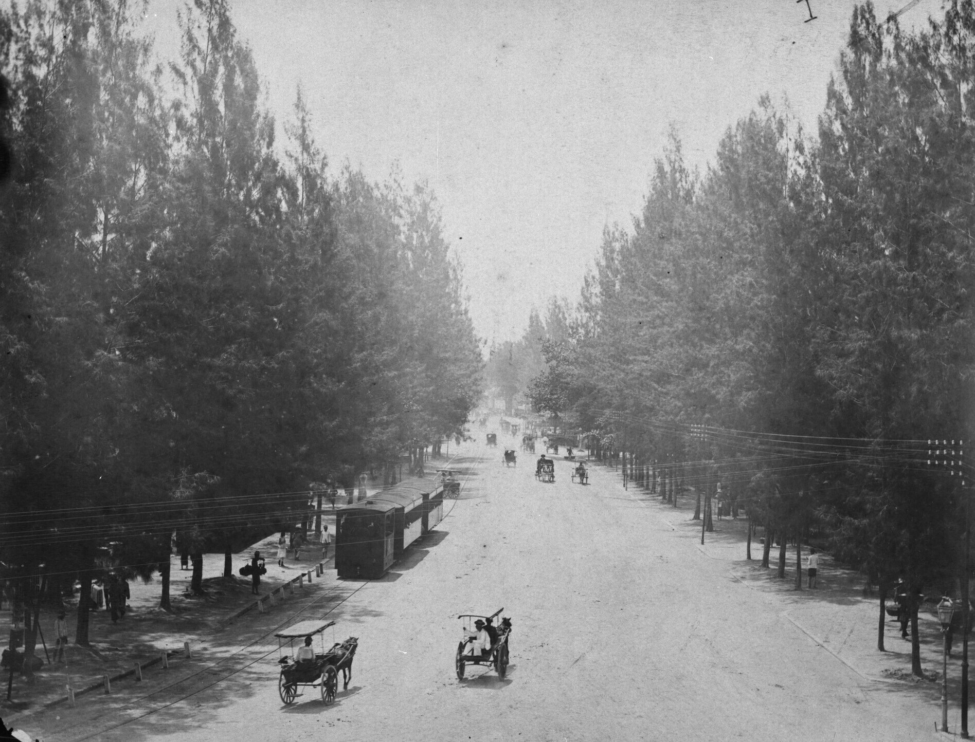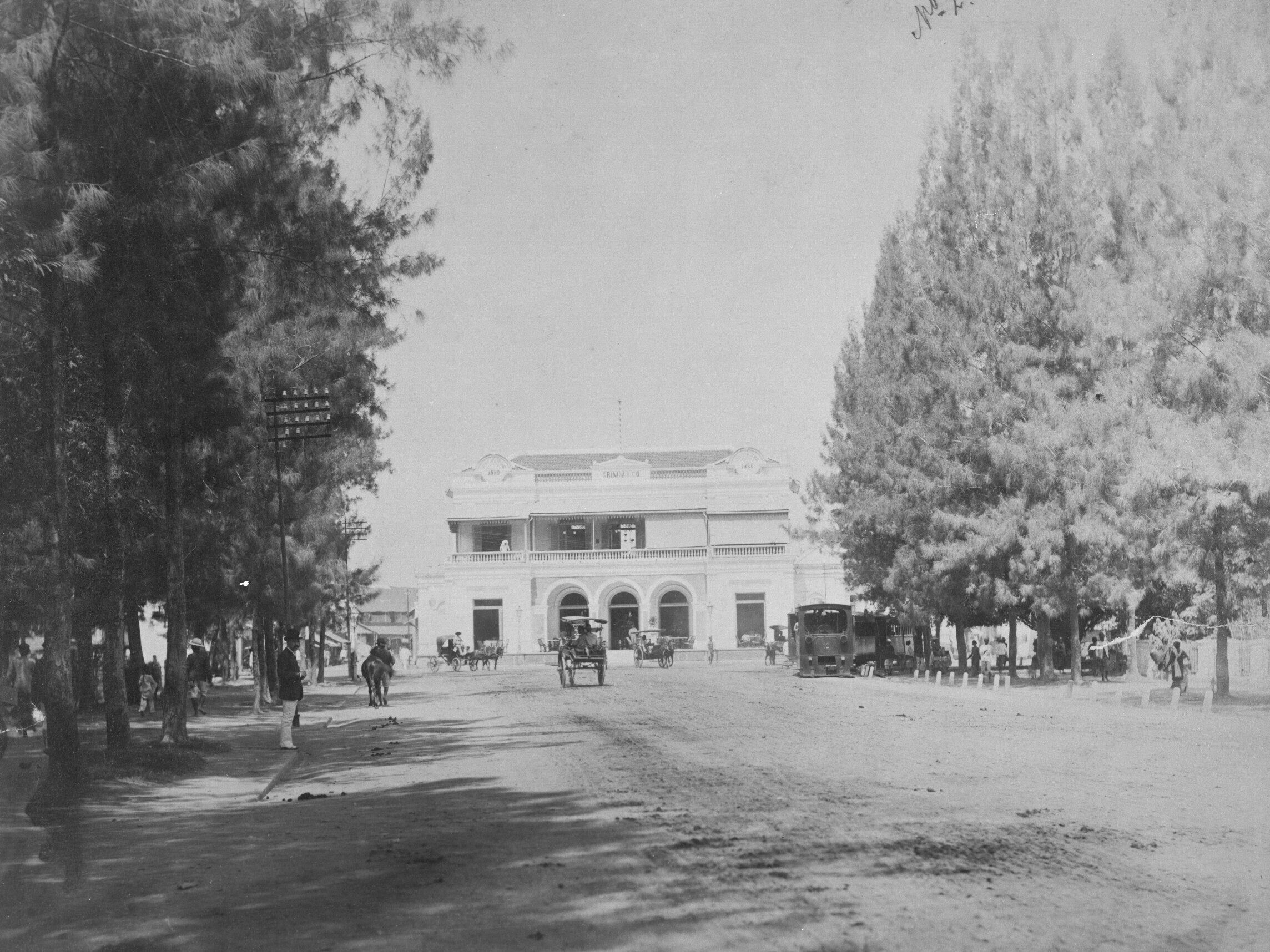 Straatgezicht met tram, Pasar Besar, Soerabaja