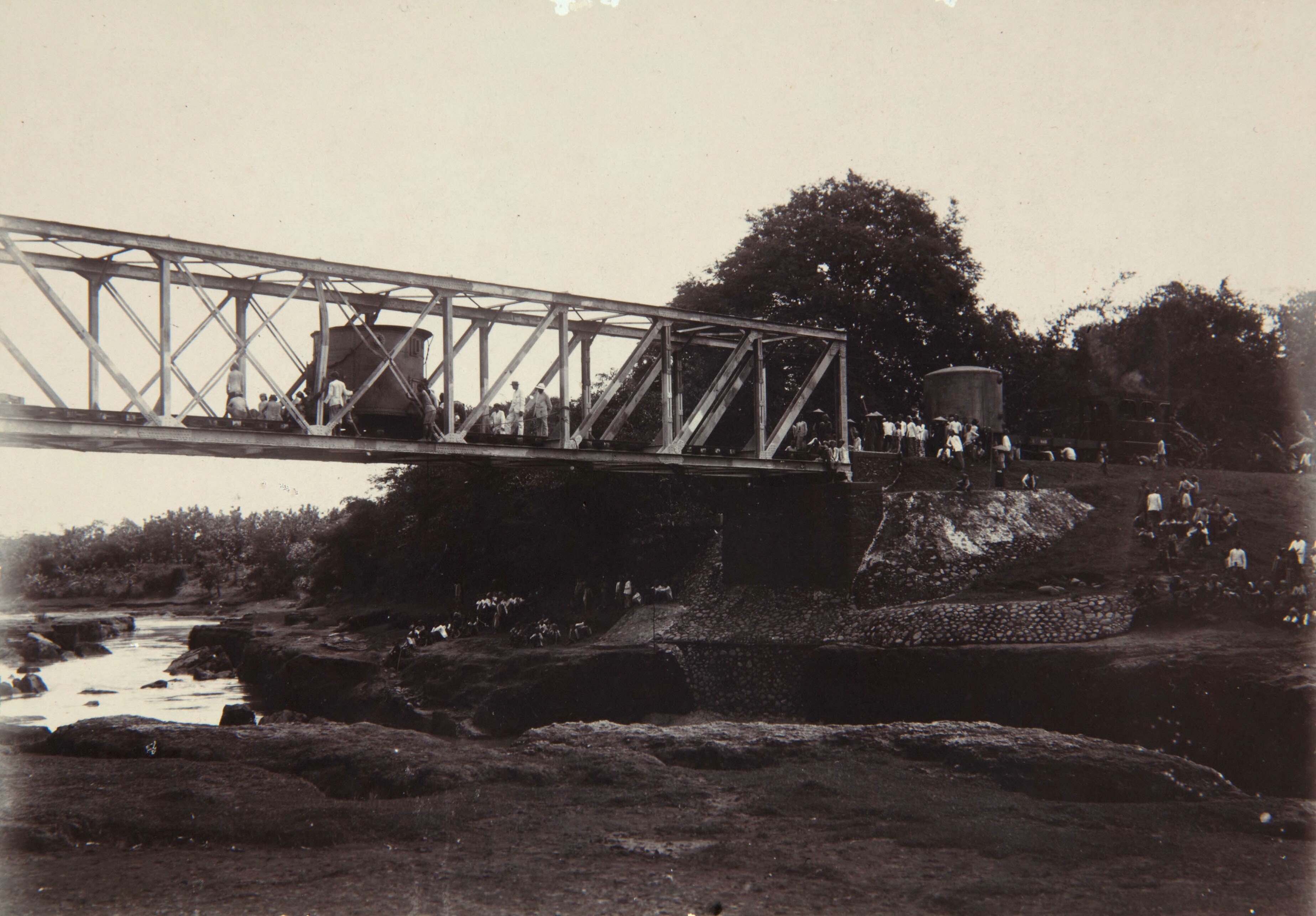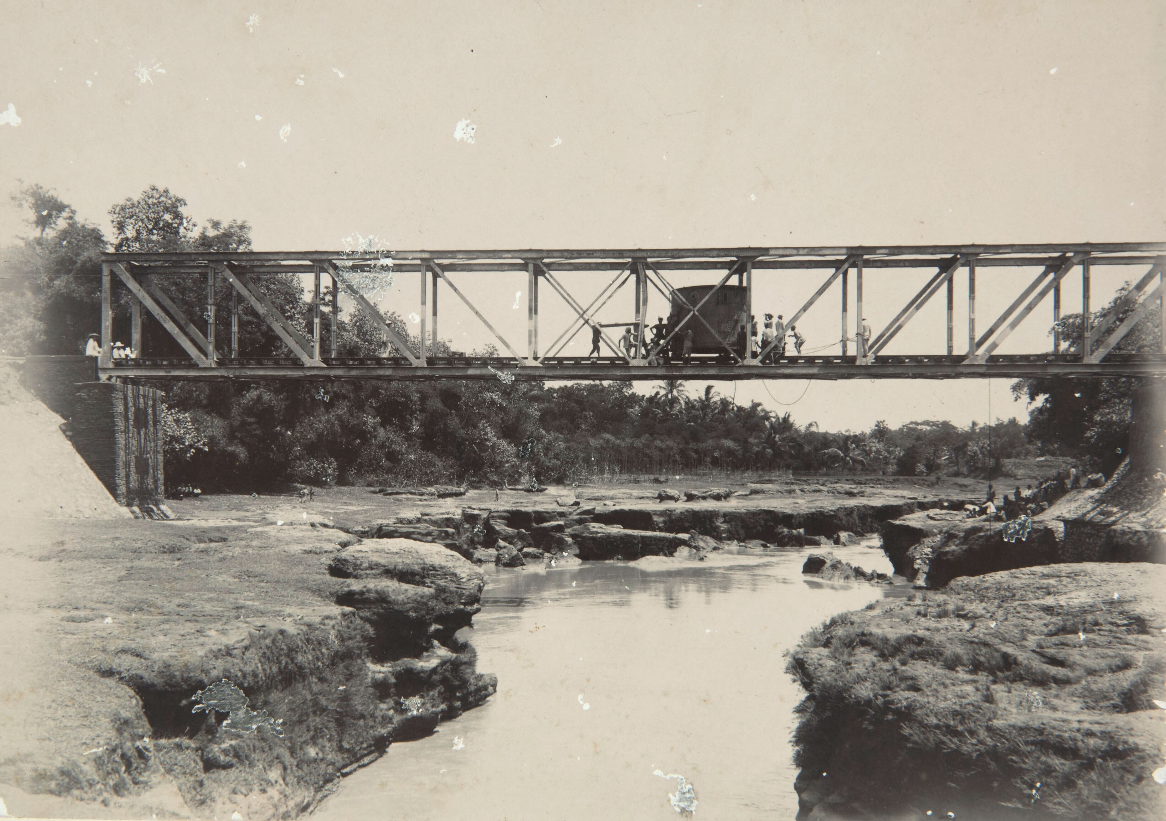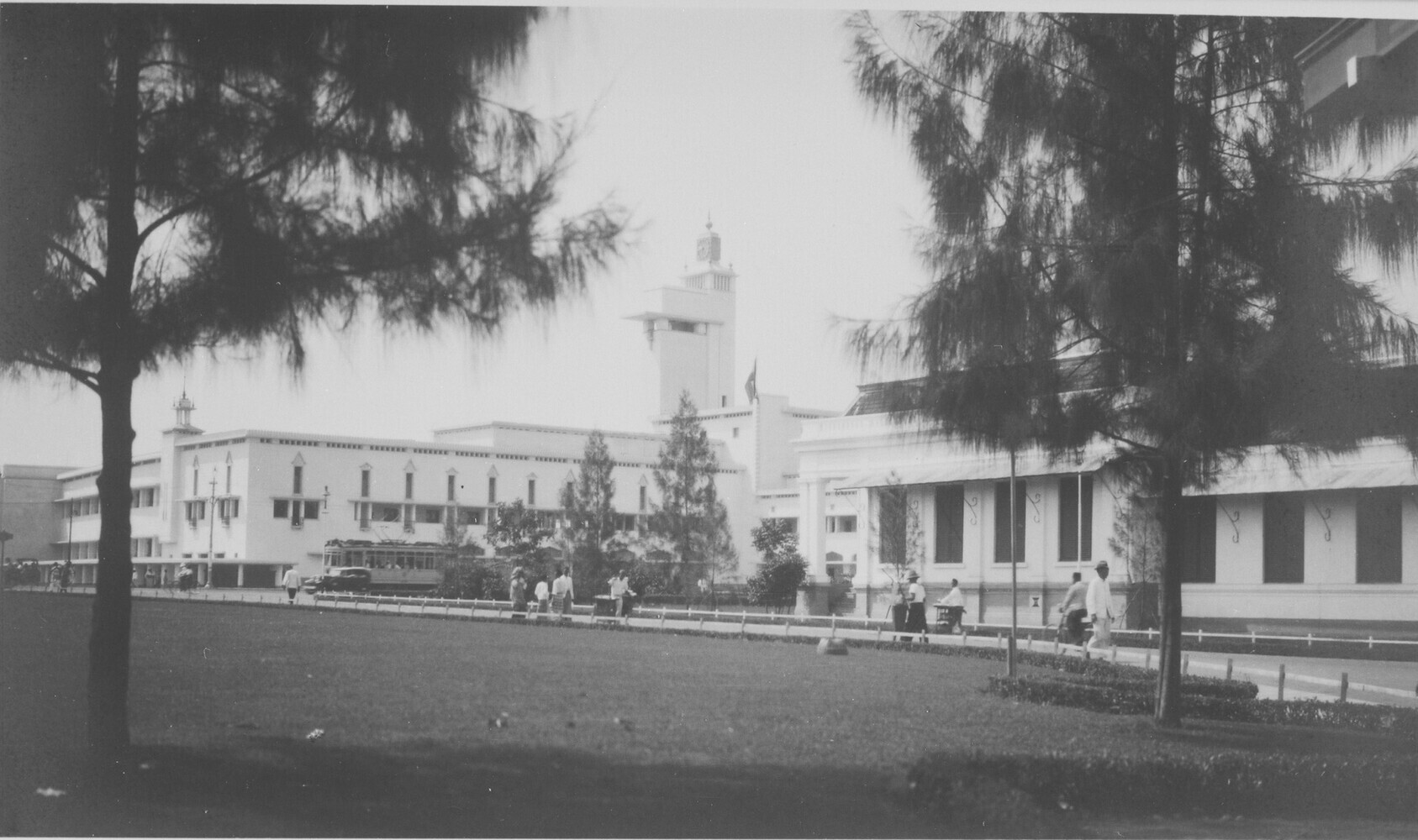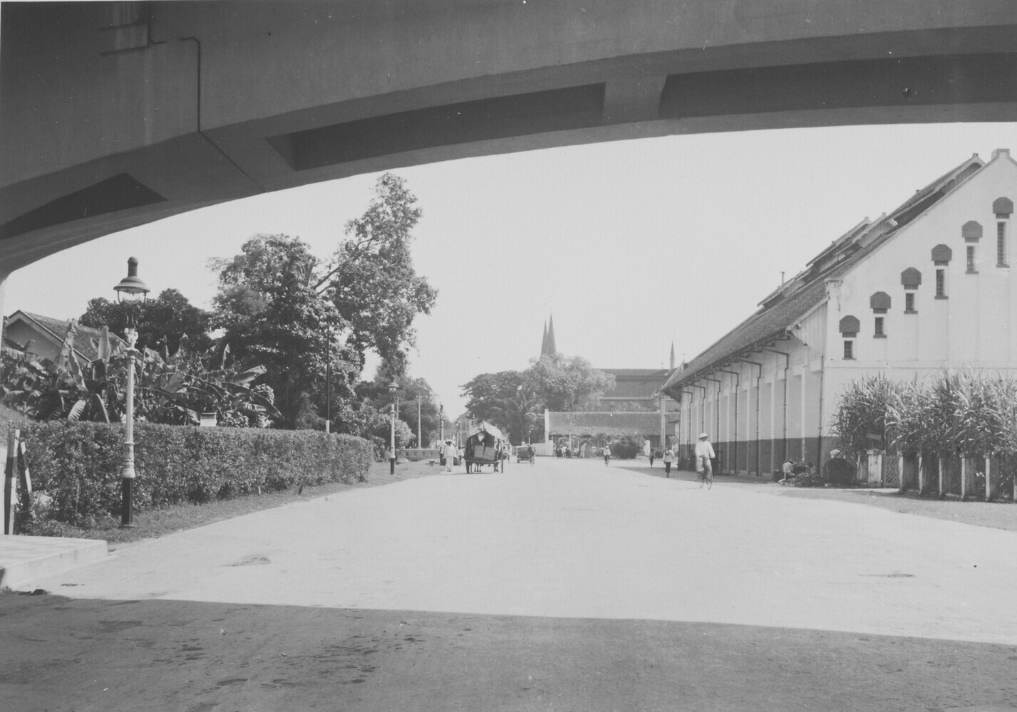 Straatgezicht met viaduct bij de Stadstuin te Soerabaja