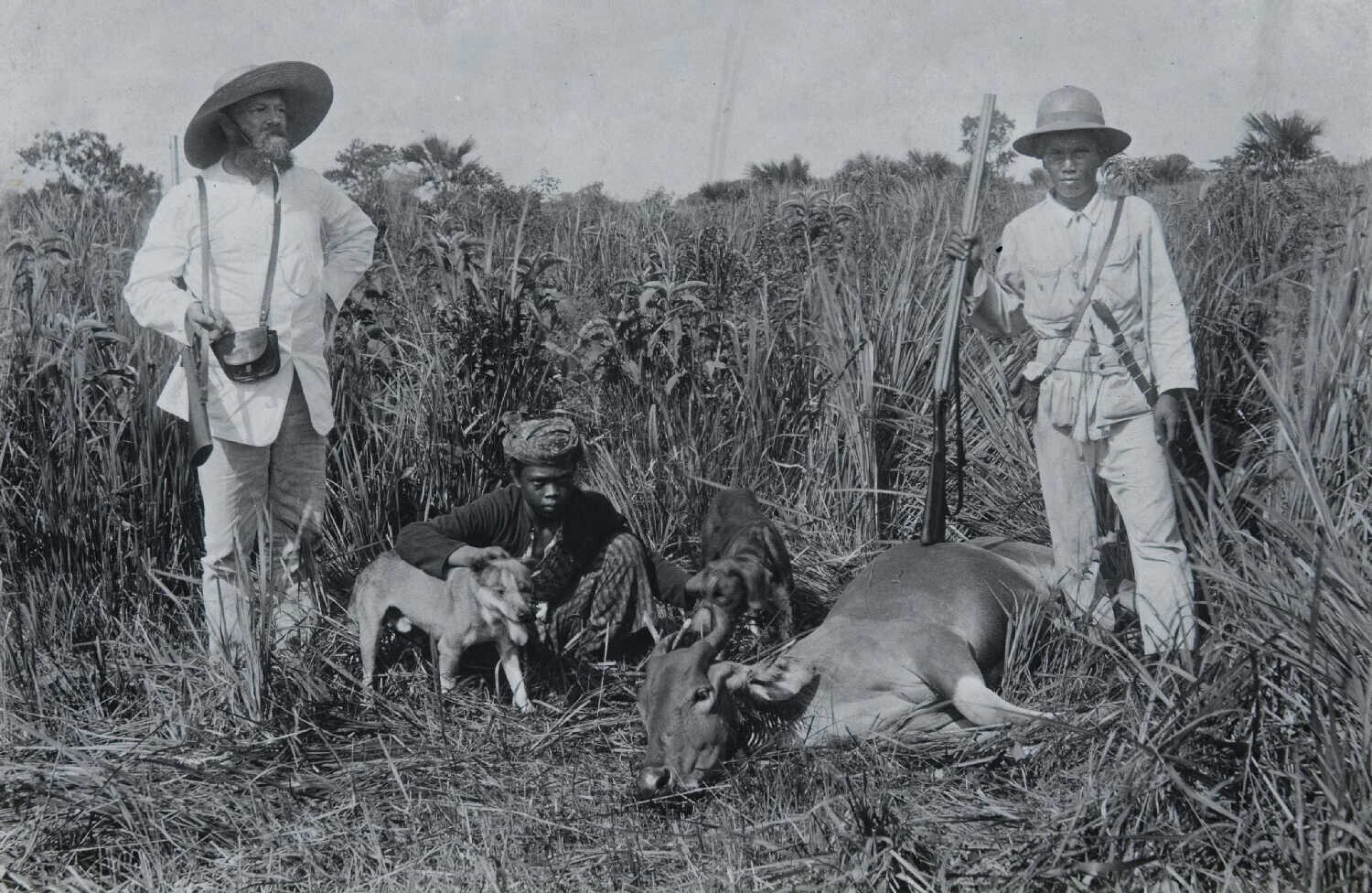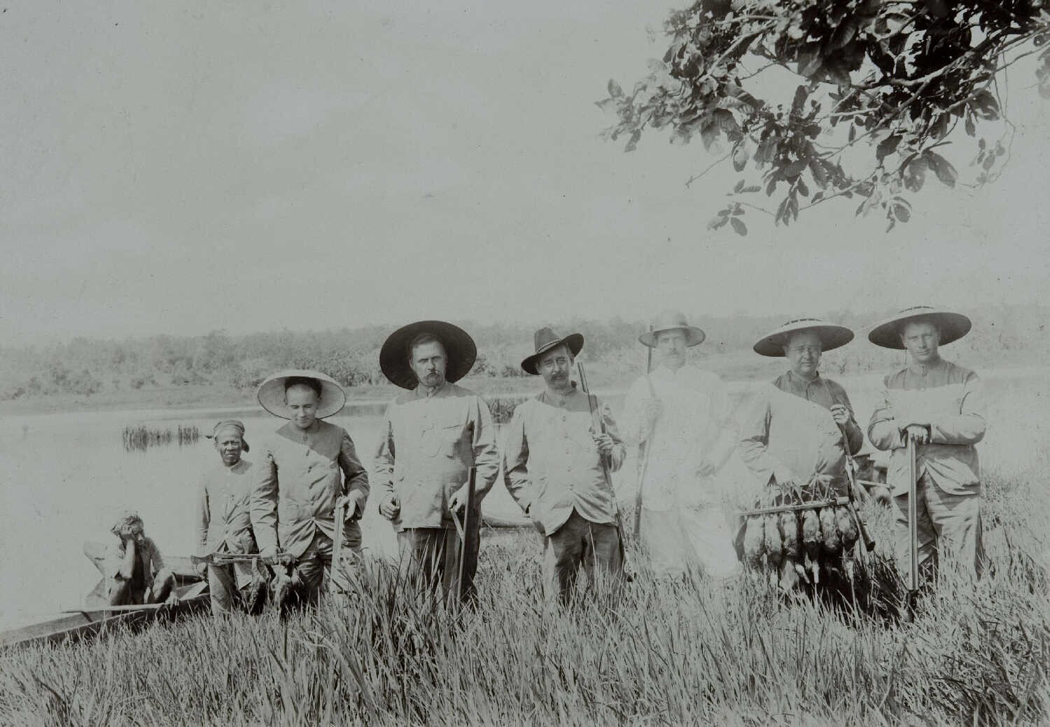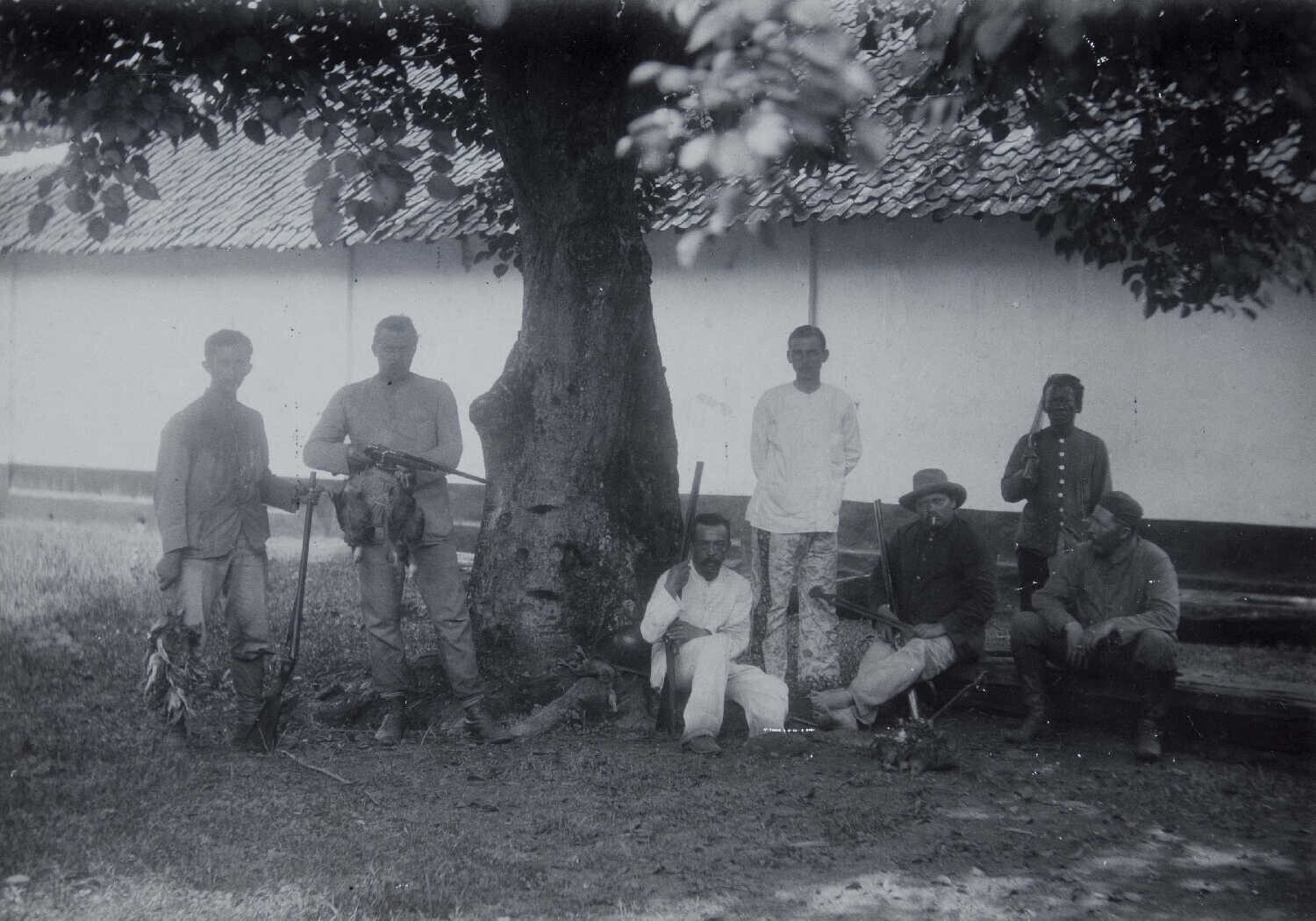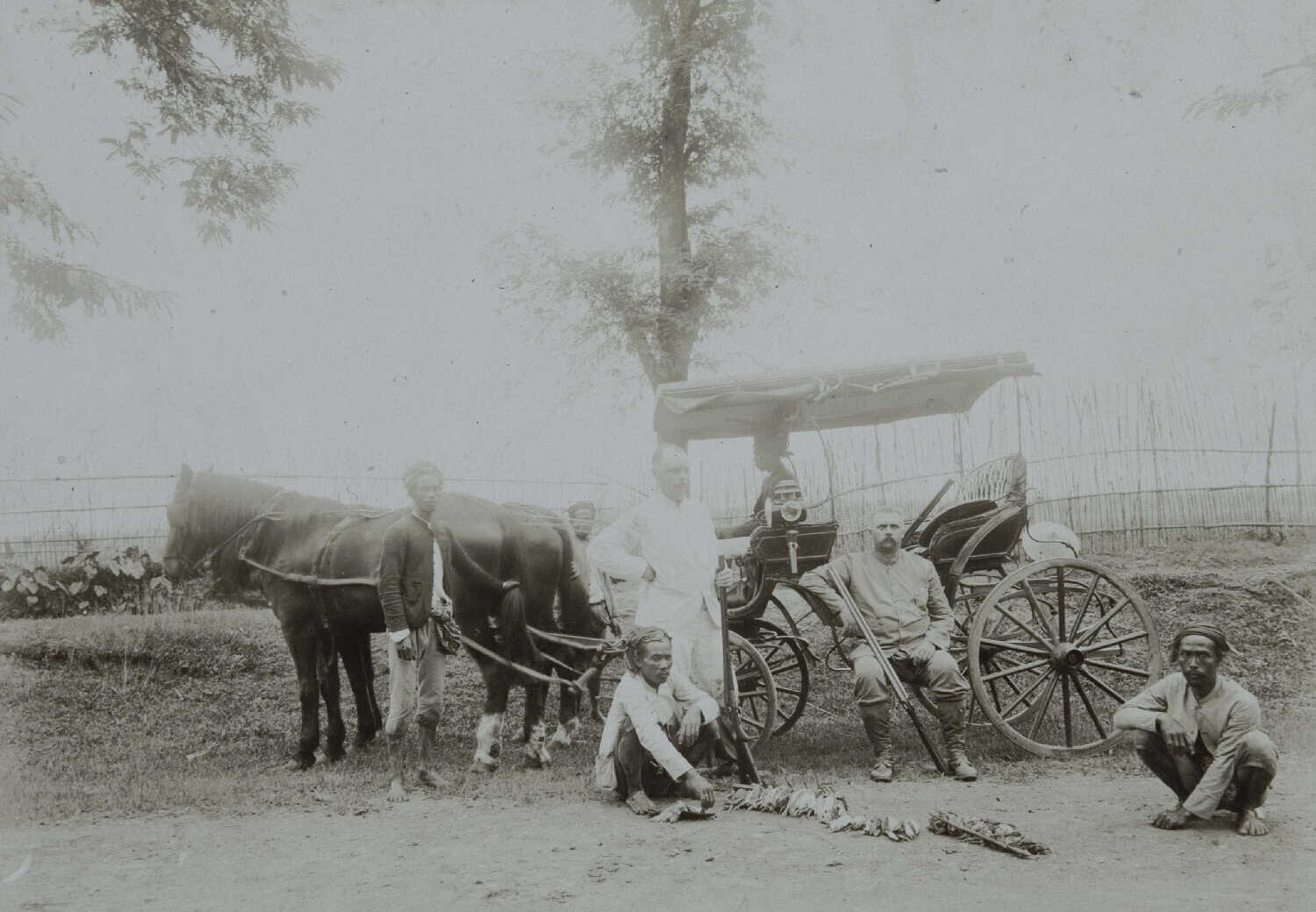 De familie C.H.A. Westhoff met personeel voor hun wo...