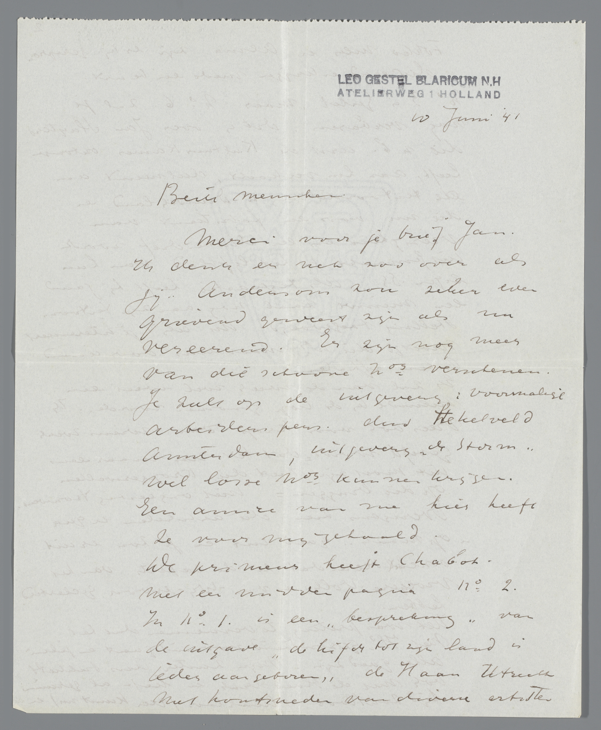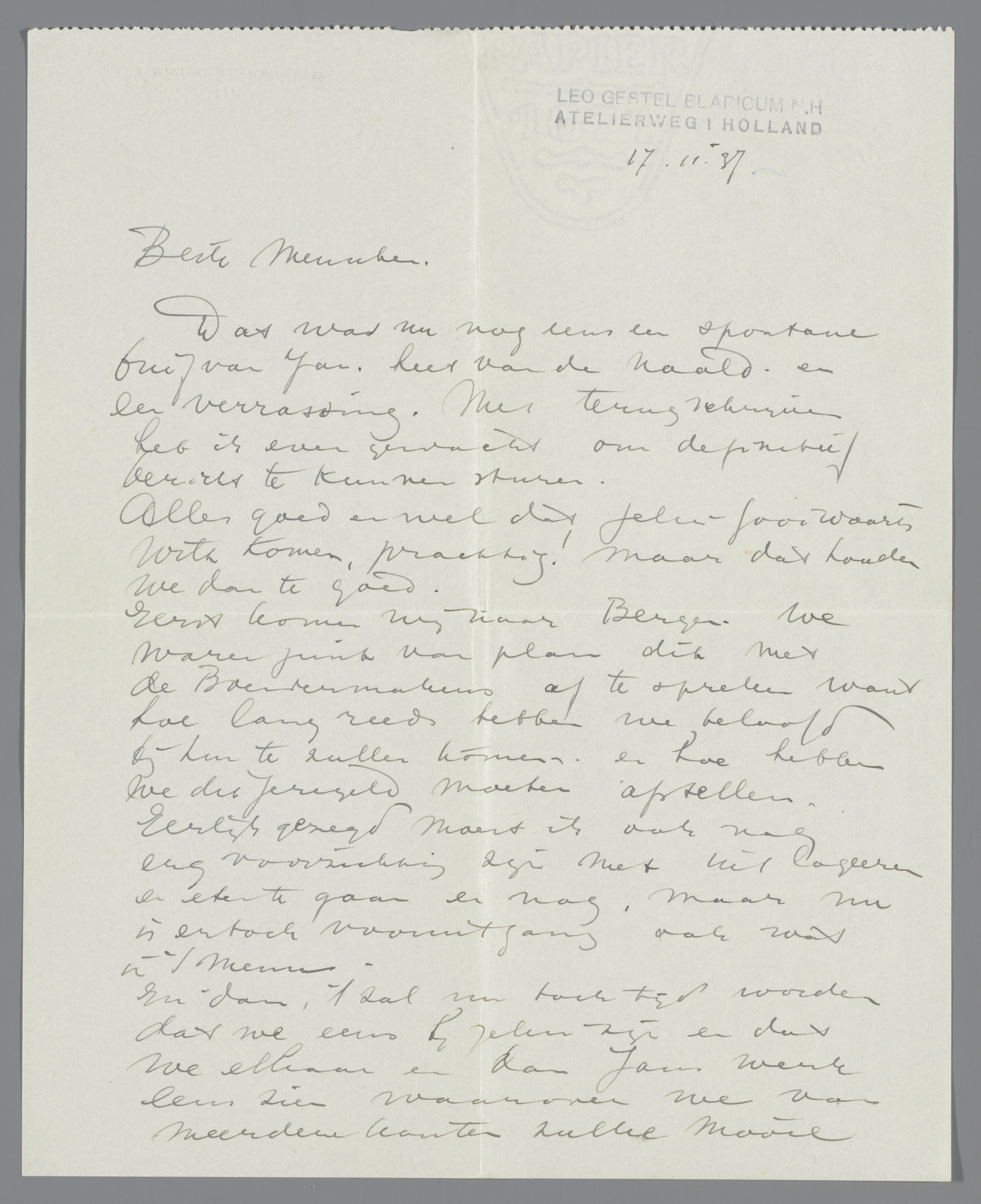 Brief aan Hendrik Willem Mesdag in Den Haag