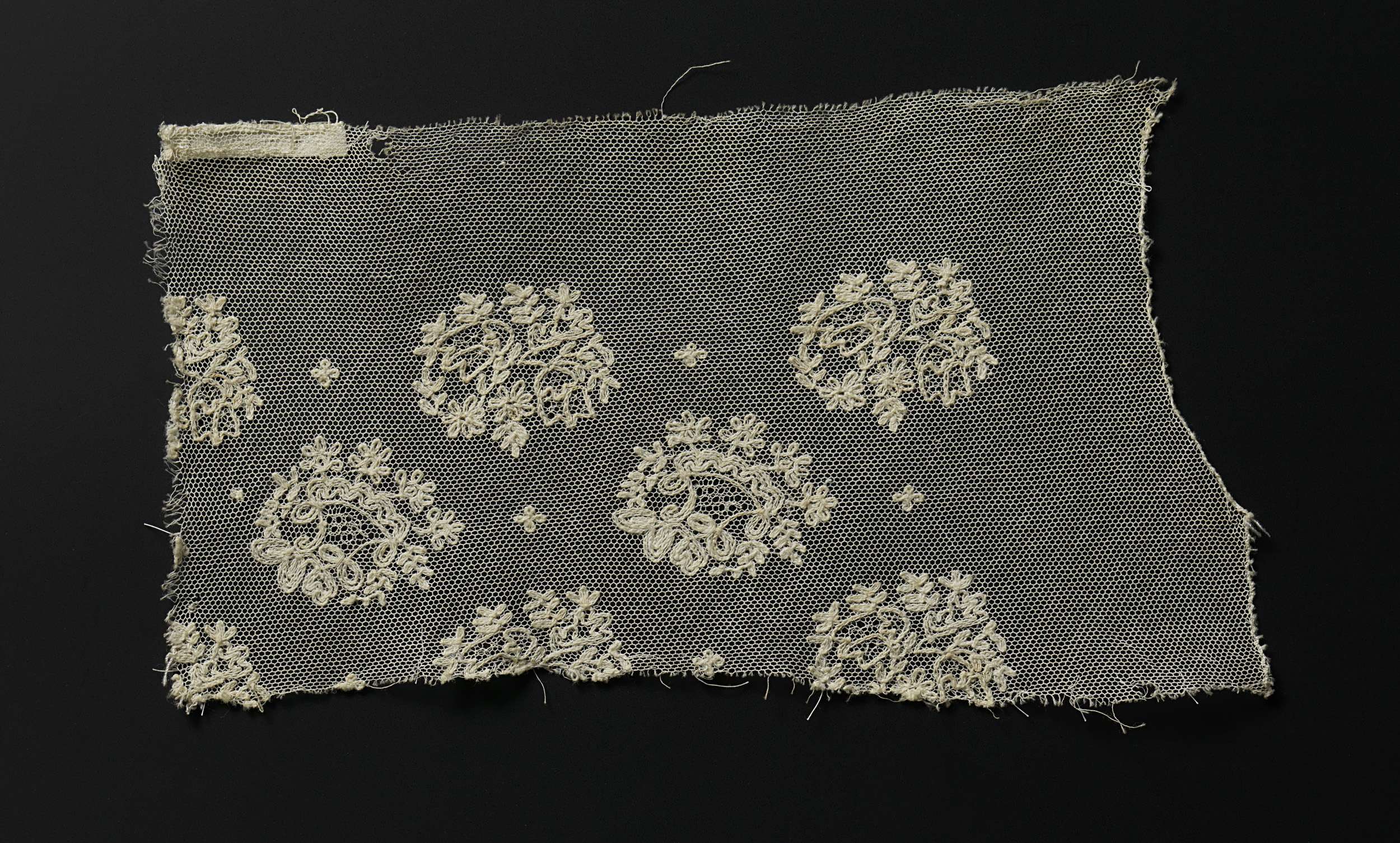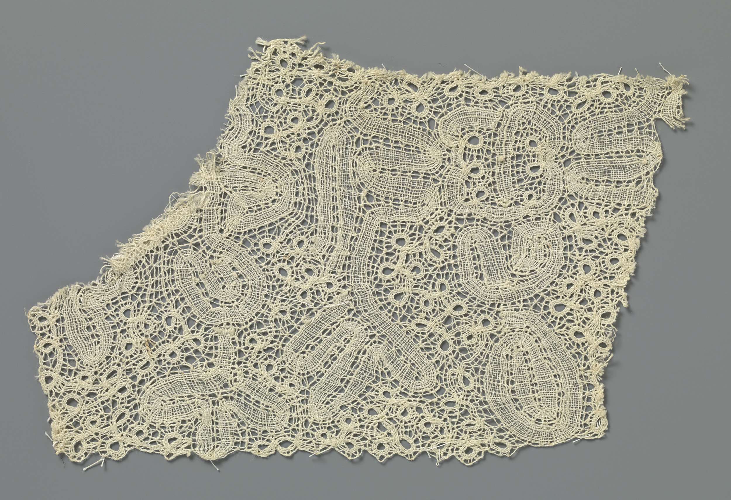 Fragment kantborduurwerk met vierpuntige sterren in ...