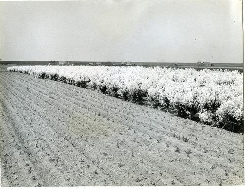 Foto in zwart-wit van bloeiend koolzaad door J.D. de...