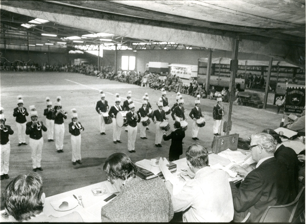 Zwart-wit foto van Drumband Eensgezindheid uit Aerdt...