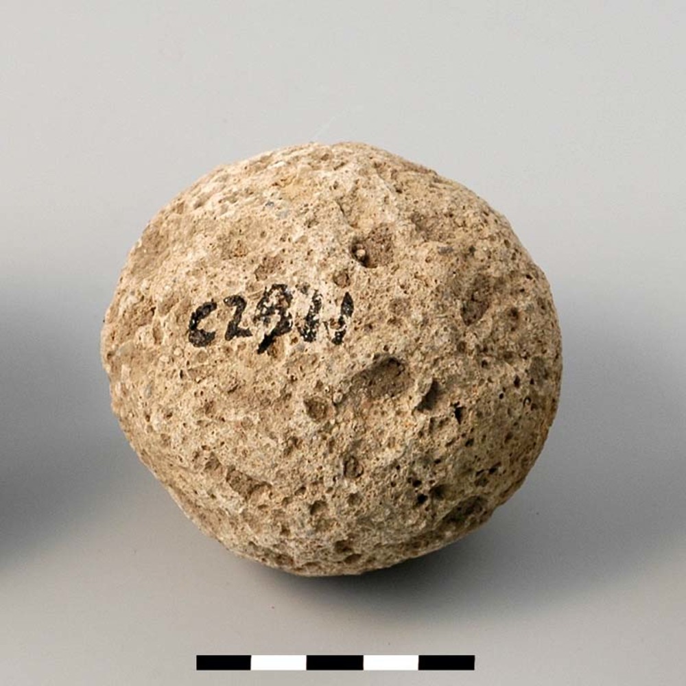 Grote slingerkogel van tufsteen uit de Romeinse tijd