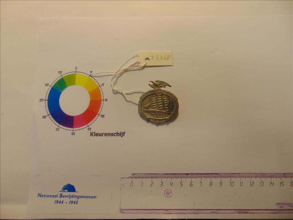 broche, hout, met daarop het V-teken en de tekst Ned...