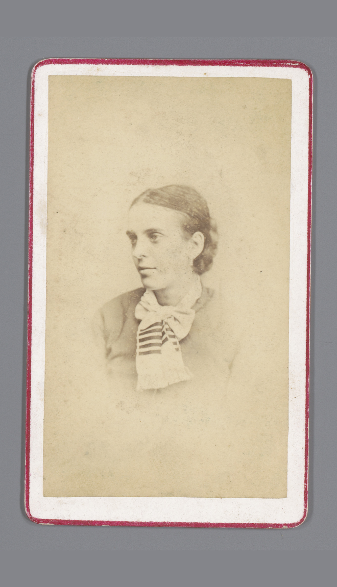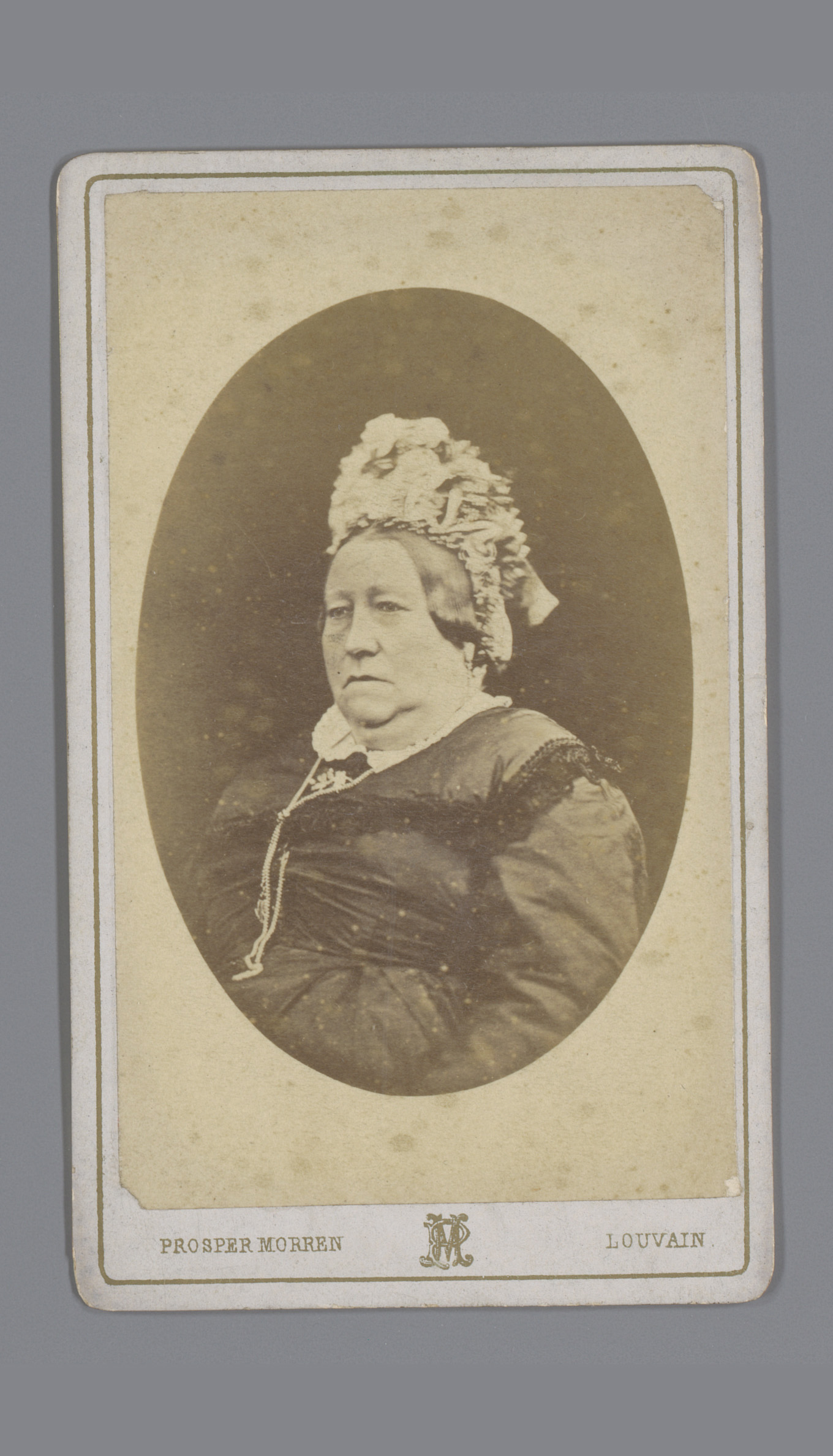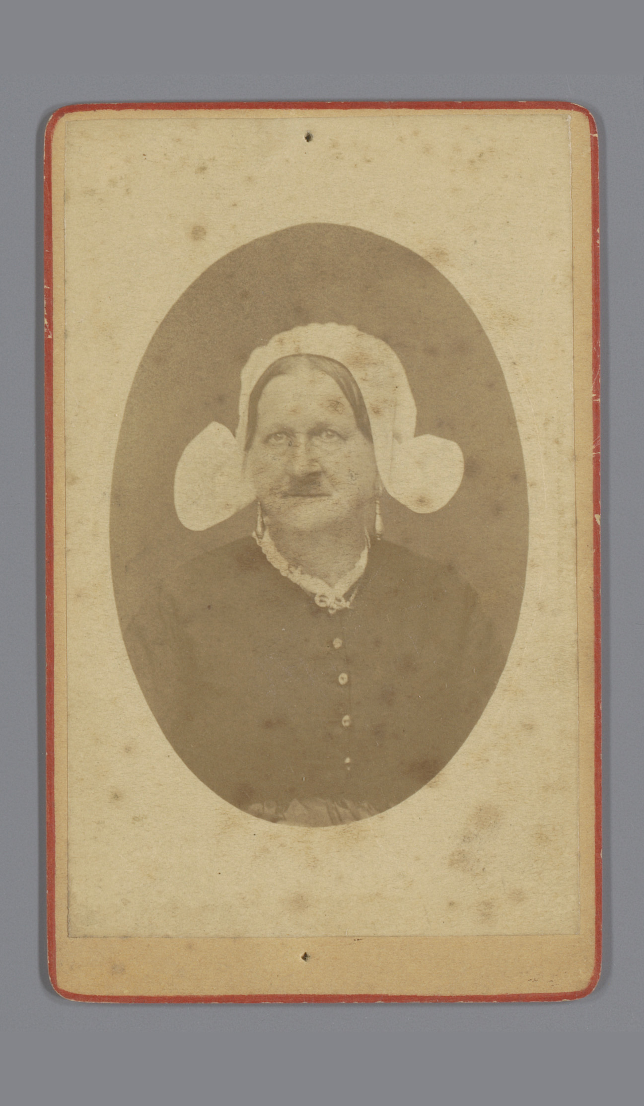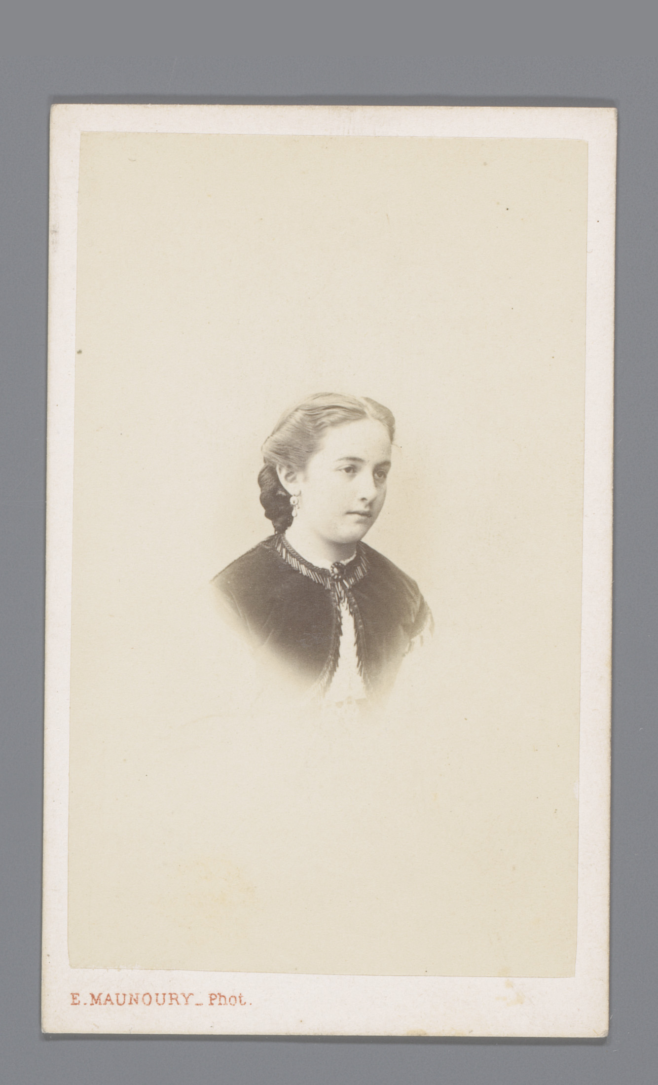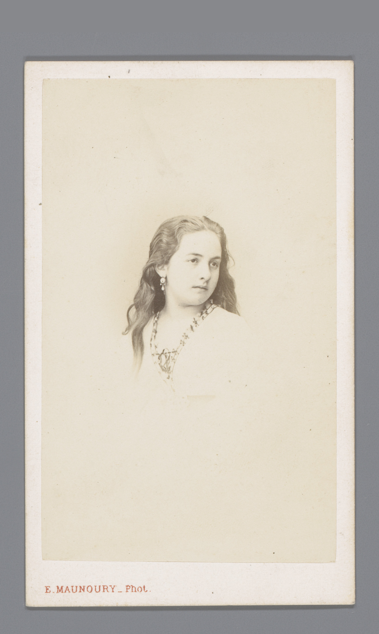Portret van een onbekende vrouw met pijpenkrullen en...