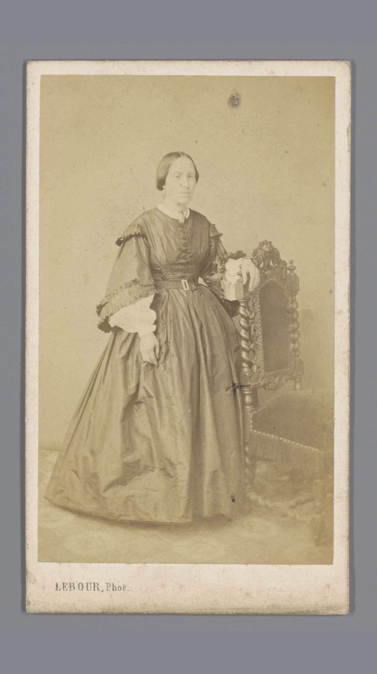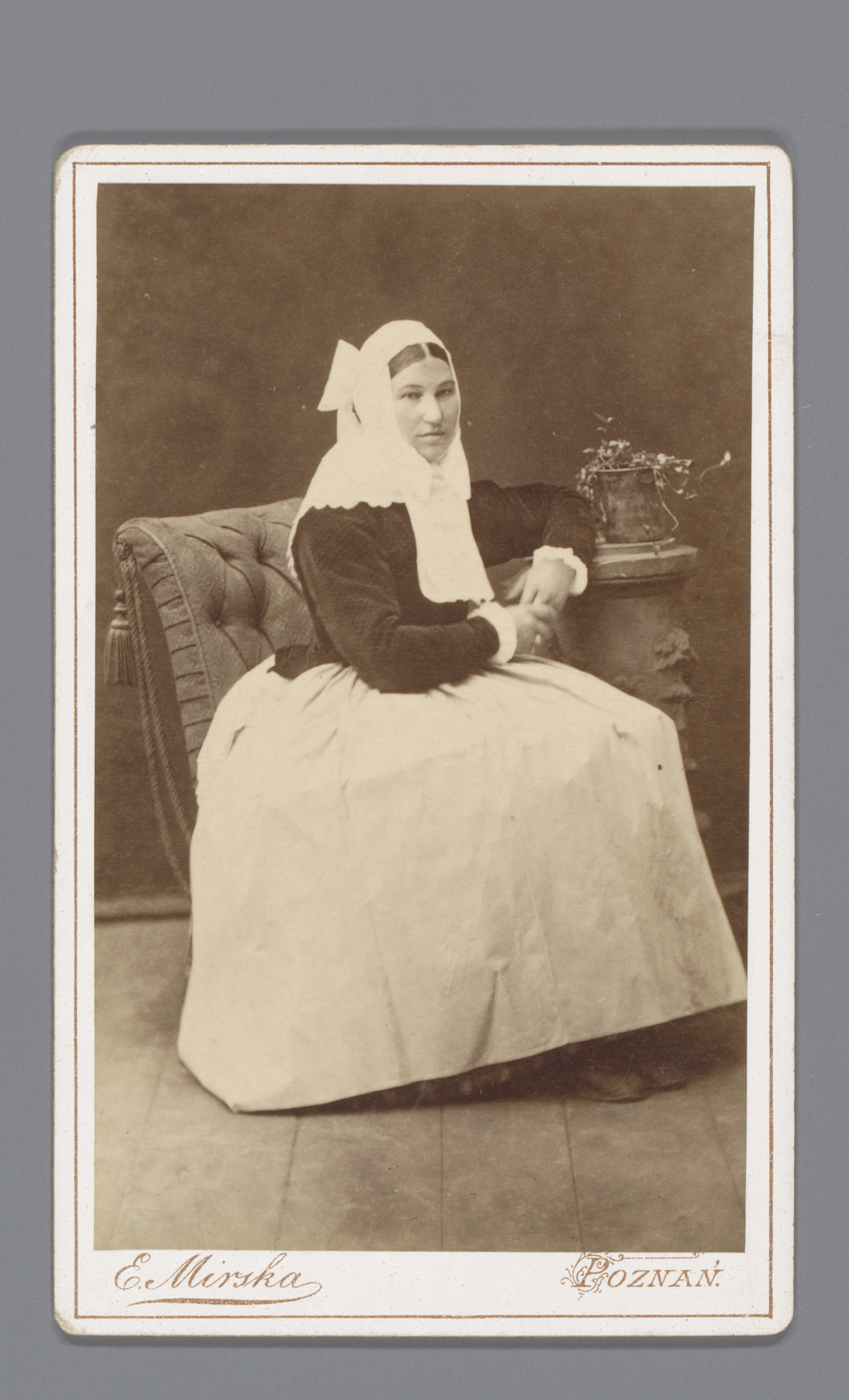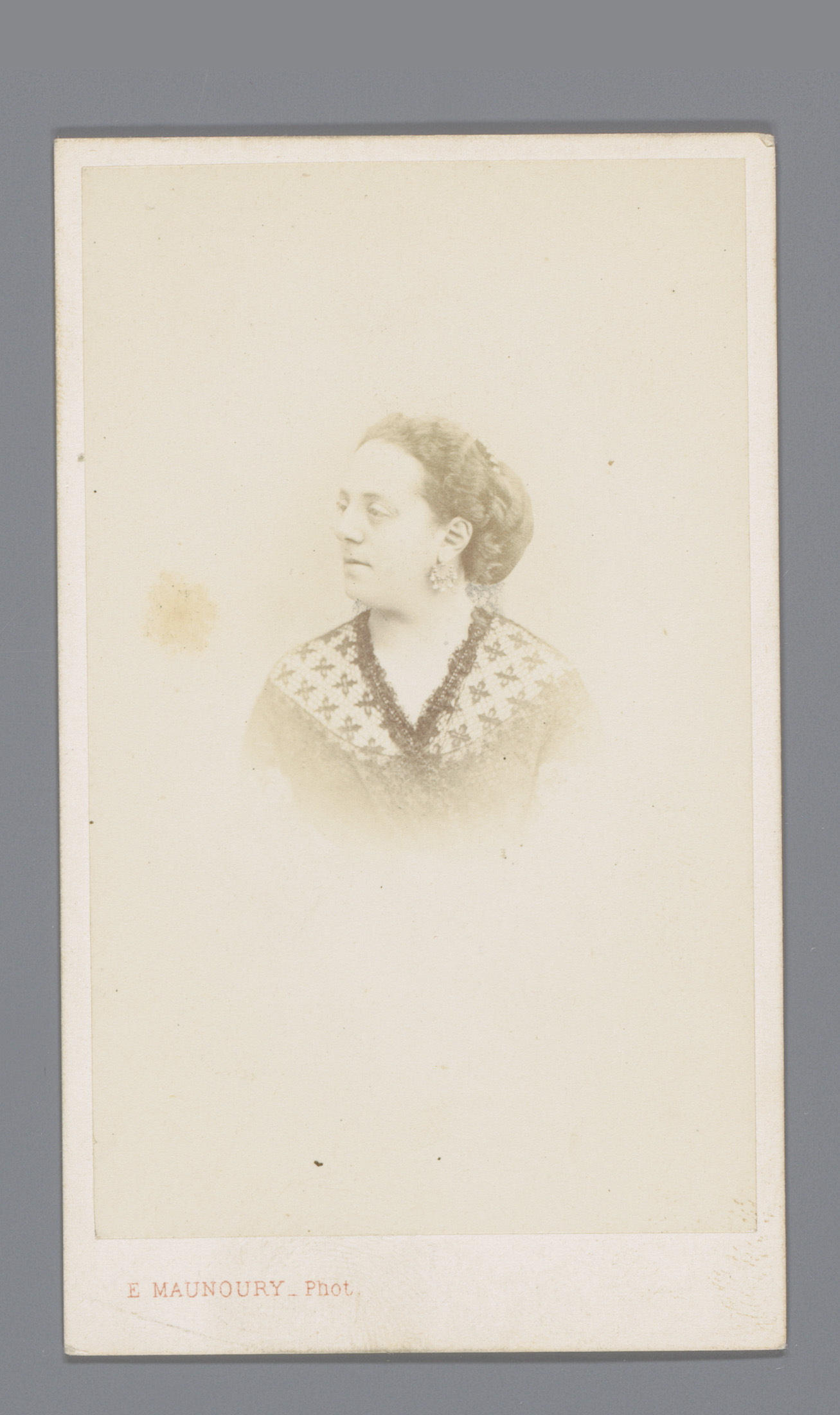 Portret van een onbekende vrouw, achterstevoren zitt...
