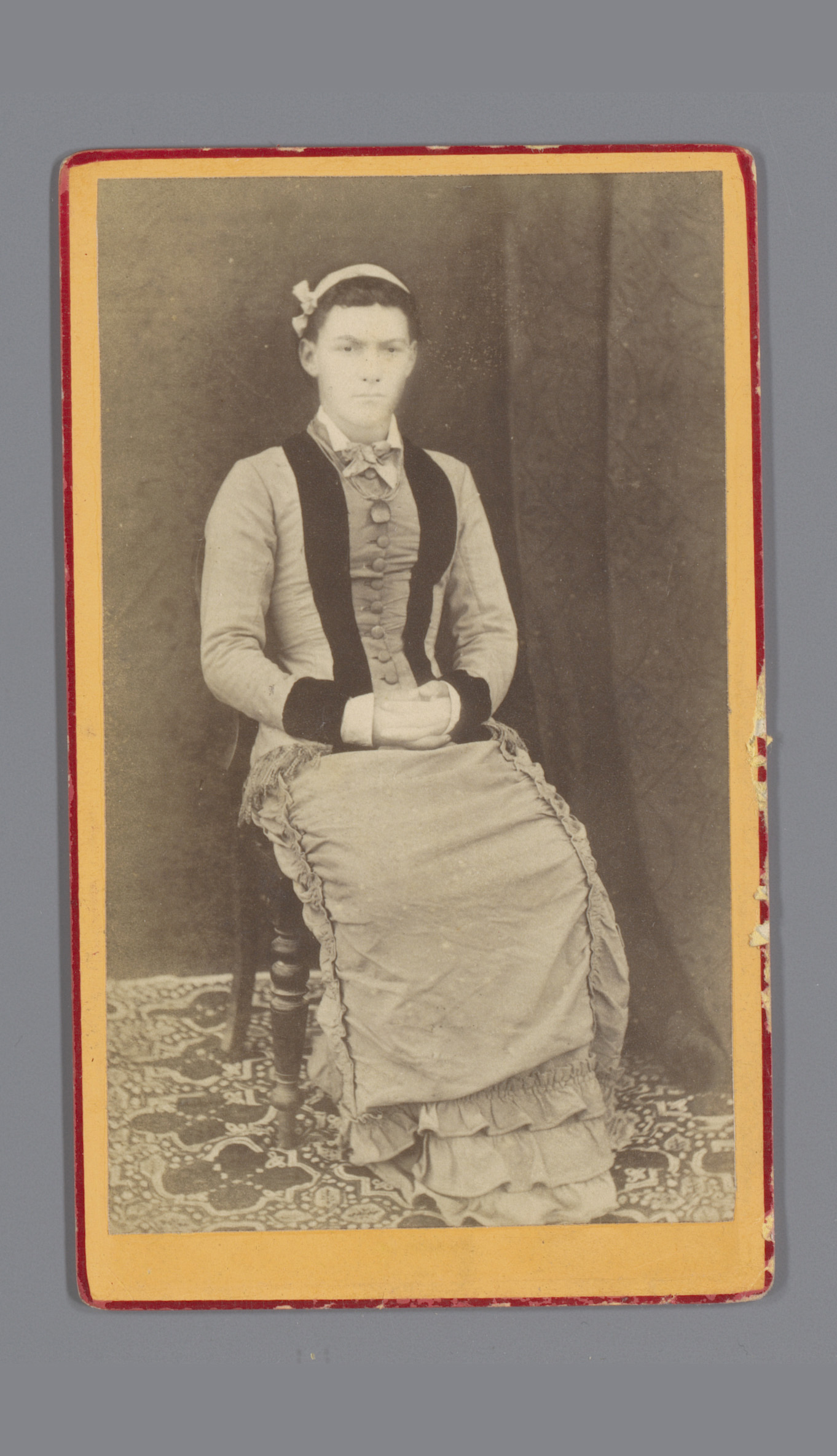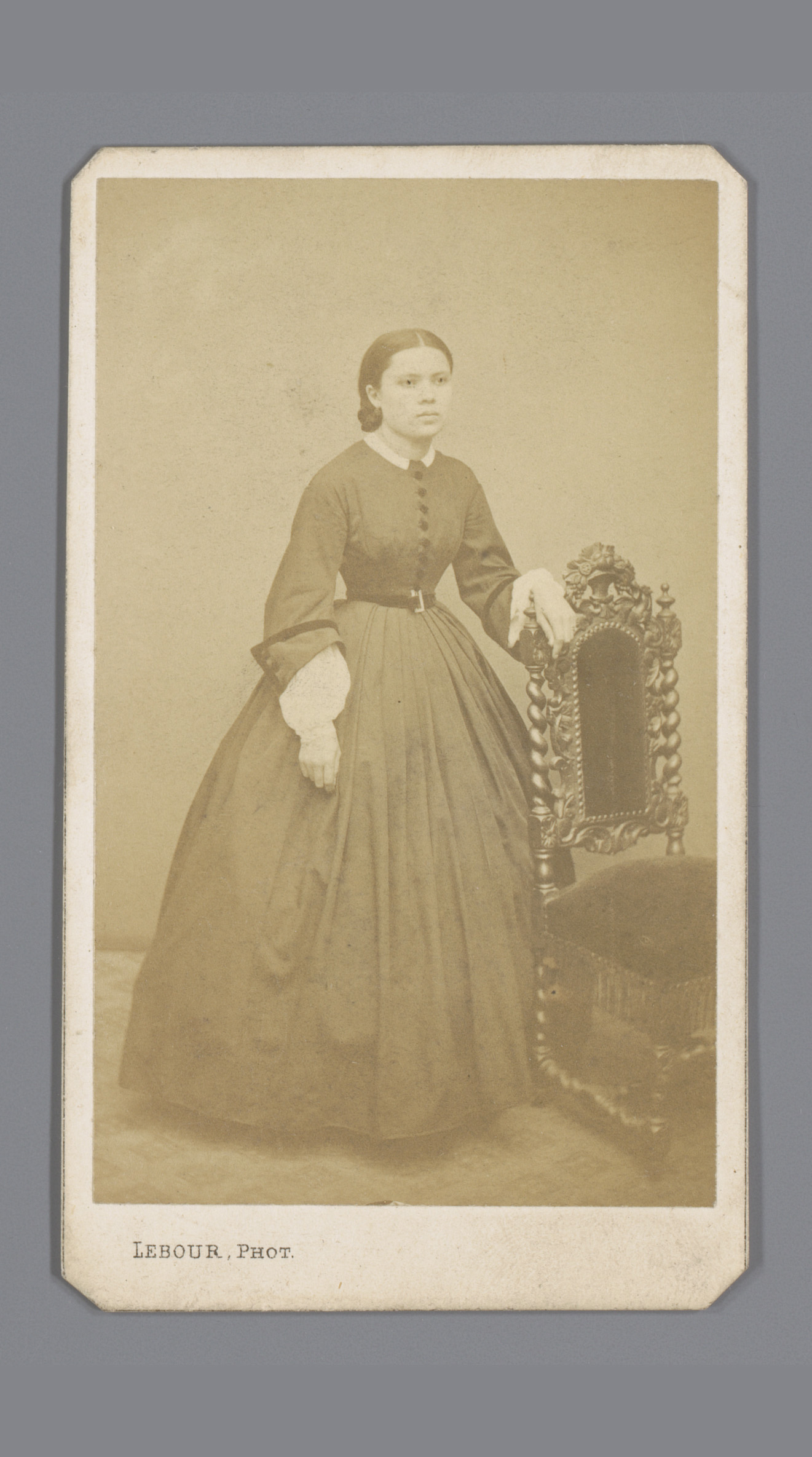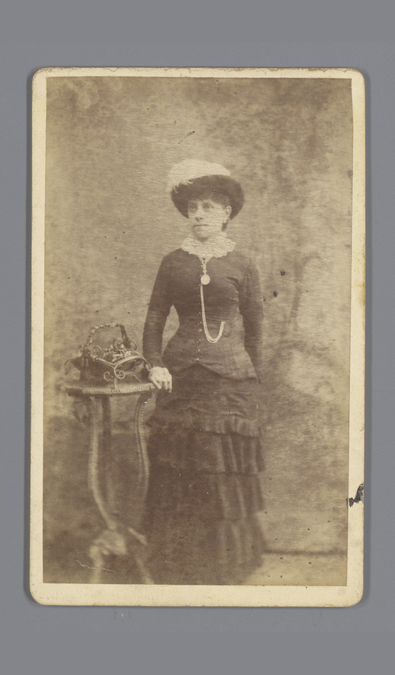 Portret van een onbekende vrouw, achterstevoren zitt...