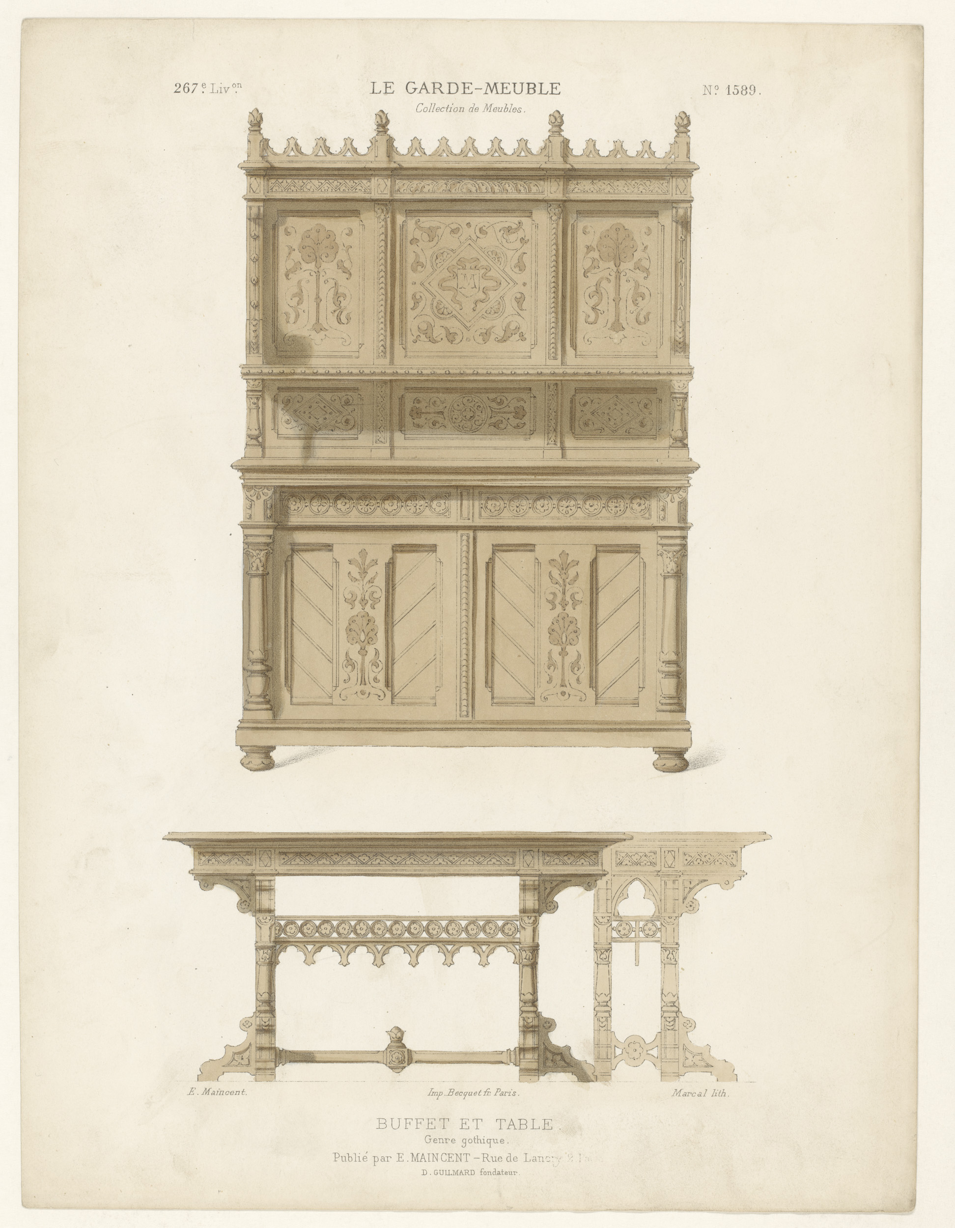 Buffetkast en tafel Genre gothique