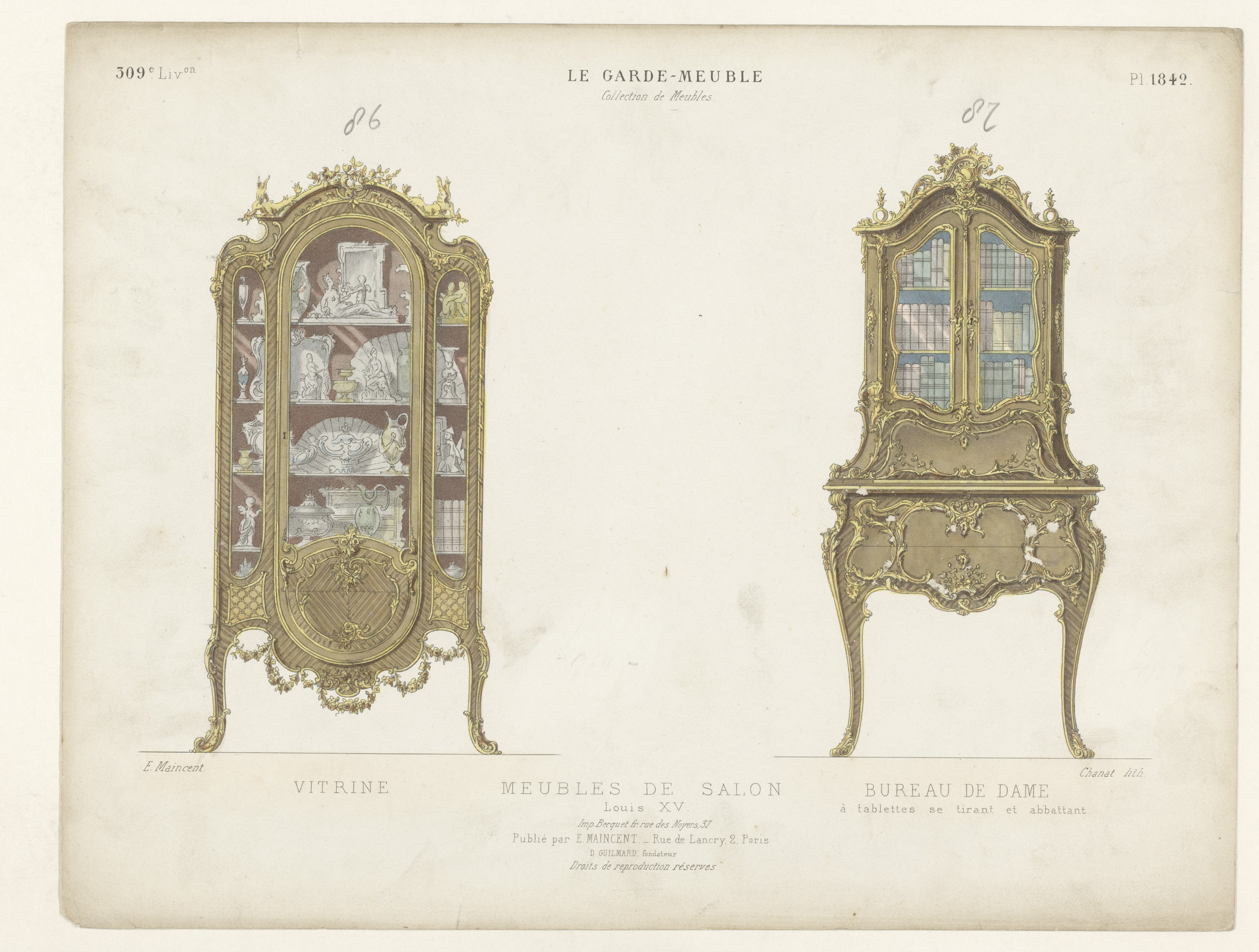 Vitrinekast en damesbureau