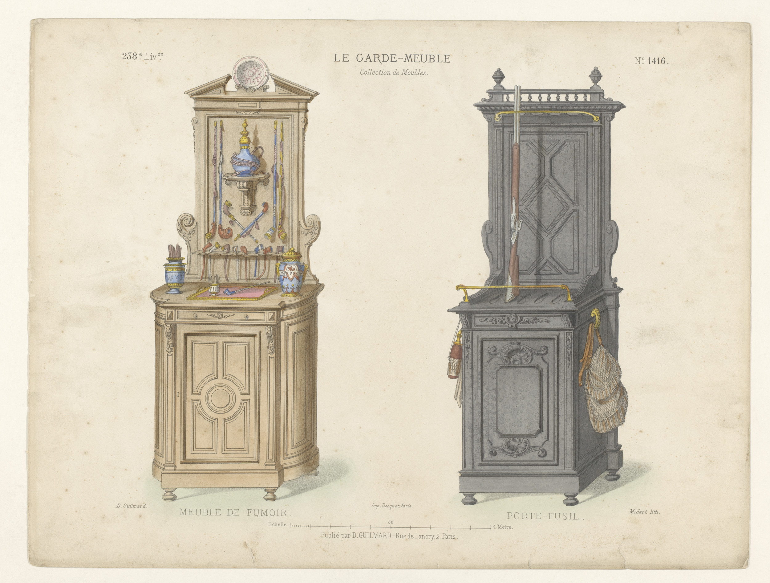 Twee kasten met rook- en jachtattributen